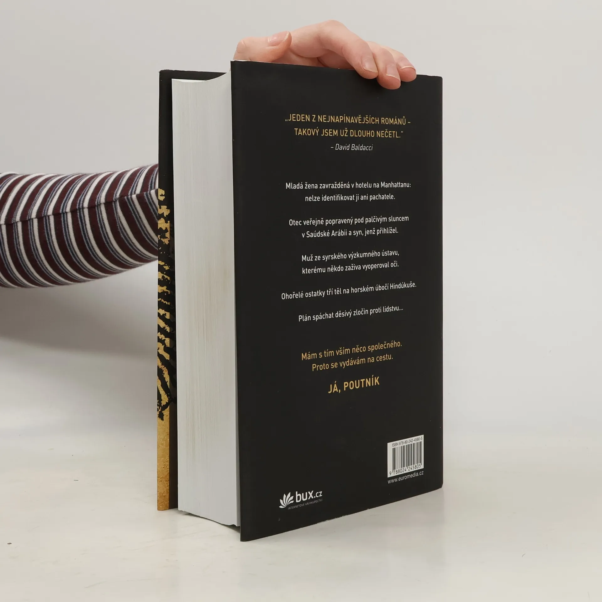 Mladá žena zavražděná v hotelu na Manhattanu – nelze identifikovat ji ani pachatele. Otec veřejně sťatý pod palčivým sluncem v Saúdské Arábii a syn, jenž přihlížel. Muž ze syrského výzkumného ústavu, kterému někdo zaživa vyoperoval oči. Ohořelé ostatky tří těl na horském úbočí Hindúkuše. Plán spáchat děsivý zločin proti lidstvu… Mám s tím vším něco společného. Proto se vydávám na cestu. Já, Poutník. „Jediný thriller, který si letos musíte přečíst.“ – The Guardian