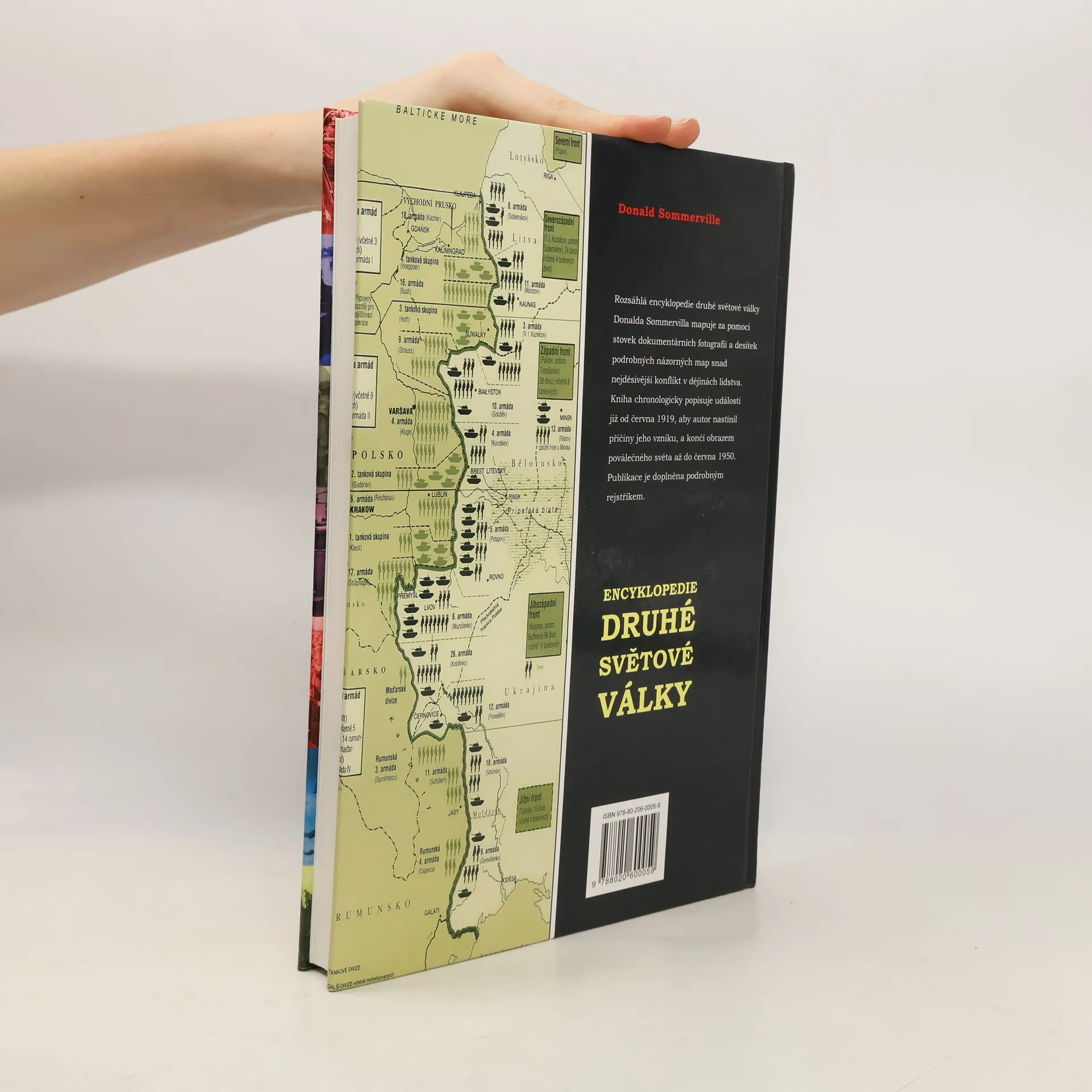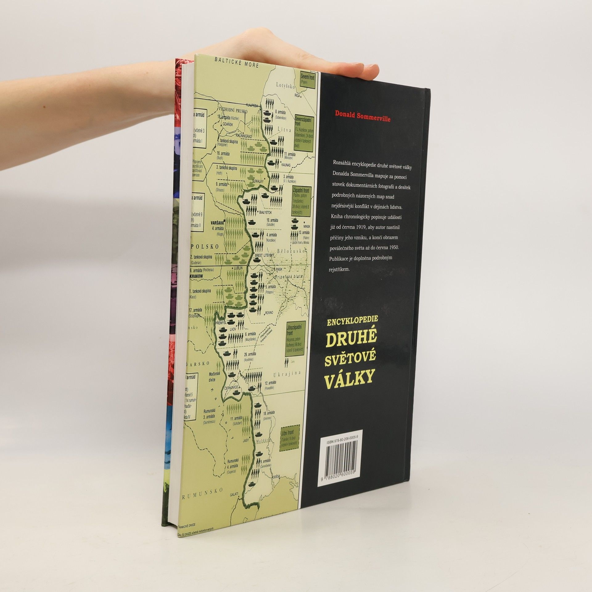 Rozsáhlá encyklopedie druhé světové války DONALDA SOMMERVILLA mapuje za pomoci stovek dokumentárních fotografií a desítek podrobných názorných map snad nejděsivější konflikt v dějinách lidstva. Kniha chronologicky popisuje události již od června 1919, aby autor nastínil příčiny jeho vzniku, a končí obrazem poválečného světa až do června 1950. Publikace je doplněna podrobným rejstříkem.