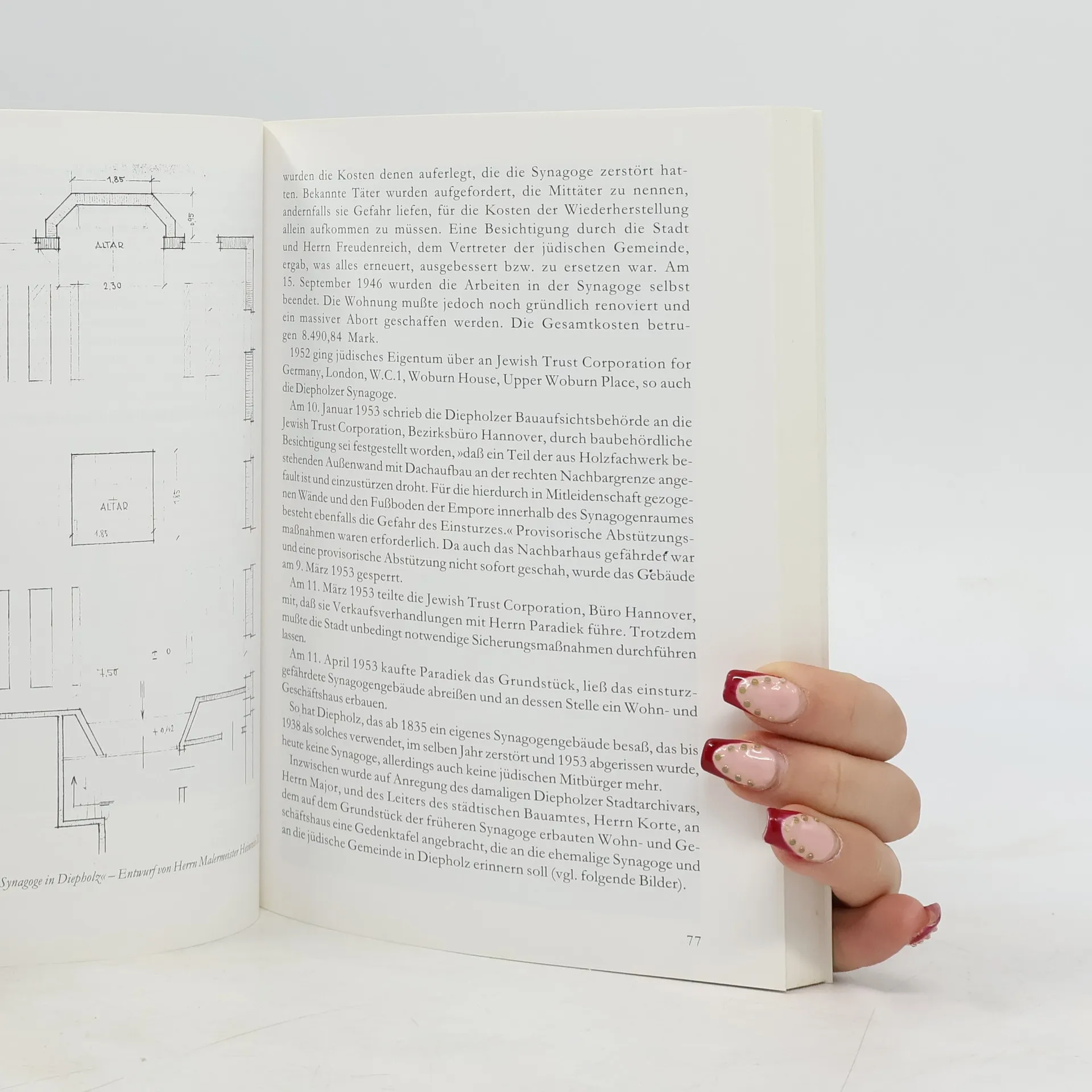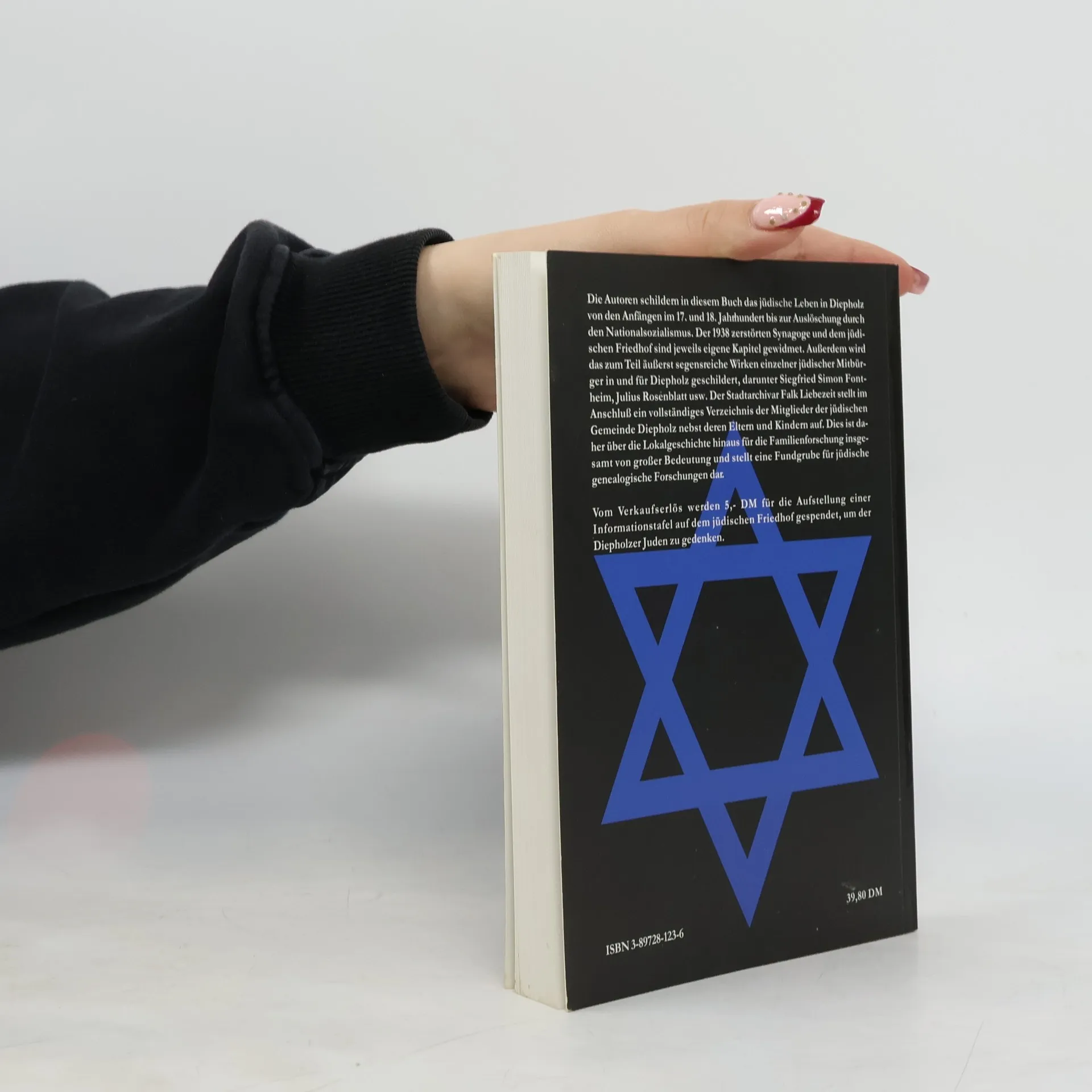 Die Autoren schildern in diesem Buch das jüdische Leben in Diepholz von den Anfängen im 17. und 18. Jahrhundert bis zur Auslöschung durch den Nationalsozialismus. Der 1938 zerstörten Synagoge und dem jüdischen Friedhof sind jeweils eigene Kapitel gewidmet. Außerdem wird das zum Teil äußerst segensreiche Wirken einzelner jüdischer Mitbürger in und für Diepholz geschildert, darunter Siegfried Simon Fontheim, Julius Rosenblatt usw. Der Stadtarchivar Falk Liebezeit stellt im Anschluß ein vollständiges Verzeichnis der Mitglieder der jüdischen Gemeinde Diepholz nebst deren Eltern und Kindern auf. Dies ist daher über die Lokalgeschichte hinaus für die Familienforschung insgesamt von großer Bedeutung und stellt eine Fundgrube für jüdische genealogische Forschungen dar. Vom Verkaufserlös werden 2,56 Euro für die Aufstellung einer Informationstafel auf dem jüdischen Friedhof gespendet, um der Diepholzer Juden zu gedenken.