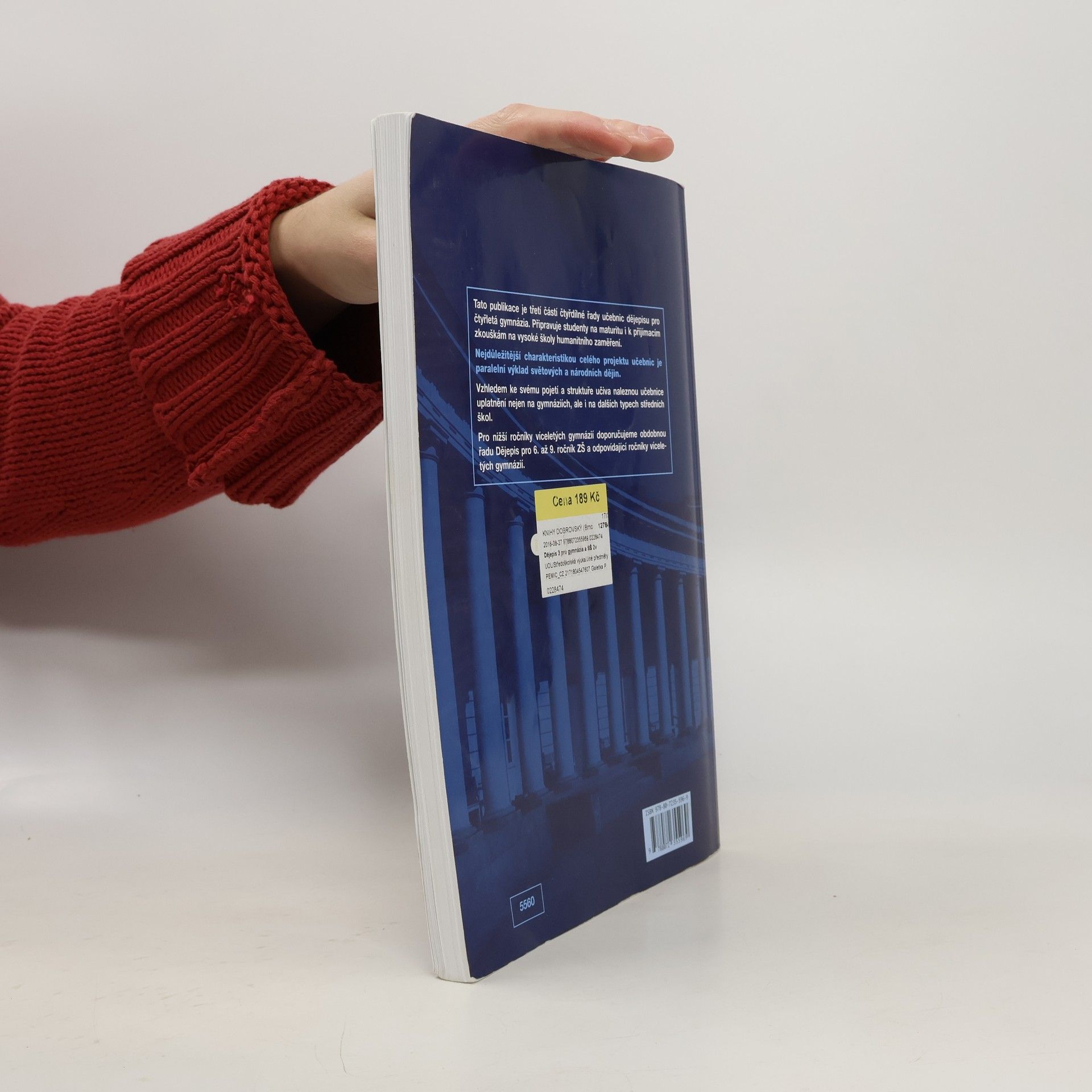 Třetí z řady učebnic dějepisu pro gymnázia a střední školy – uplatní se především na gymnáziích, ale i na dalších typech škol, neboť je v učebnicích graficky odlišen základní výklad od rozšiřujícího textu. Vzhledem k rozvržení učiva s důrazem na nové dějiny umožňuje i dobrou přípravu na VŠ. Kladem řady je její nepřetíženost fakty a především paralelně vedený výklad světových i českých dějin od nejstarších dob po současnost. Učebnice obsahují bohatý obrazový materiál, početné dějepisné mapy a náležitý didaktický aparát. Přední východ ●., Egypt ●., starověké Řecko ●., starověký Řím ●., Indie ●., Čína
