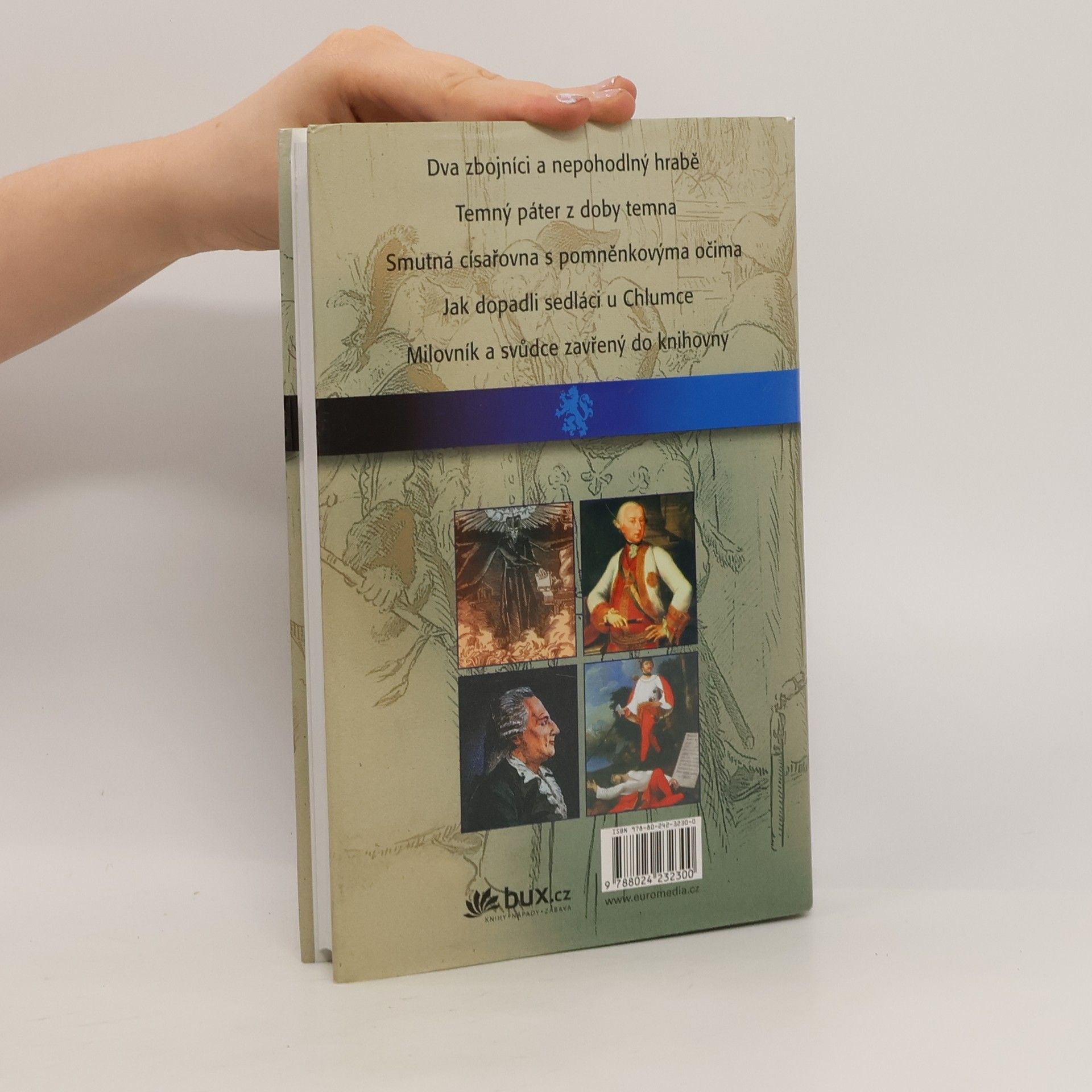 18. století - Smutná císařovna s pomněnkovýma očima. V tomto dílu Bílých míst české historie vám nabízíme procházku tak trochu opomíjeným 18. stoletím. Nejprve poznáme tři známé muže ve vyprávění nazvaném Dva zbojníci a nepohodlný hrabě a představíme si – pro mnohé asi netradičně – duchovního, jehož jméno se stalo symbolem náboženského útlaku natolik, že jsme kapitolu nazvali Temný páter z doby temna. Nebude chybět ani Marie Terezie neboli Smutná císařovna s pomněnkovýma očima, o níž se vypráví plno legend a polopravd či přímo pomluv. Dozvíme se také Jak dopadli sedláci u Chlumce a zda byl Josef II. skutečně velkým lidumilem, dobrým reformátorem a oblíbencem poddaných. Na závěr se vypravíme na severozápad Čech, kde dožíval svůj bouřlivý život Milovník a svůdce zavřený do knihovny, ale nebudeme si povídat jen o něm, protože závěr 18. století nabízí nejednu zajímavost i otázku bez odpovědi.