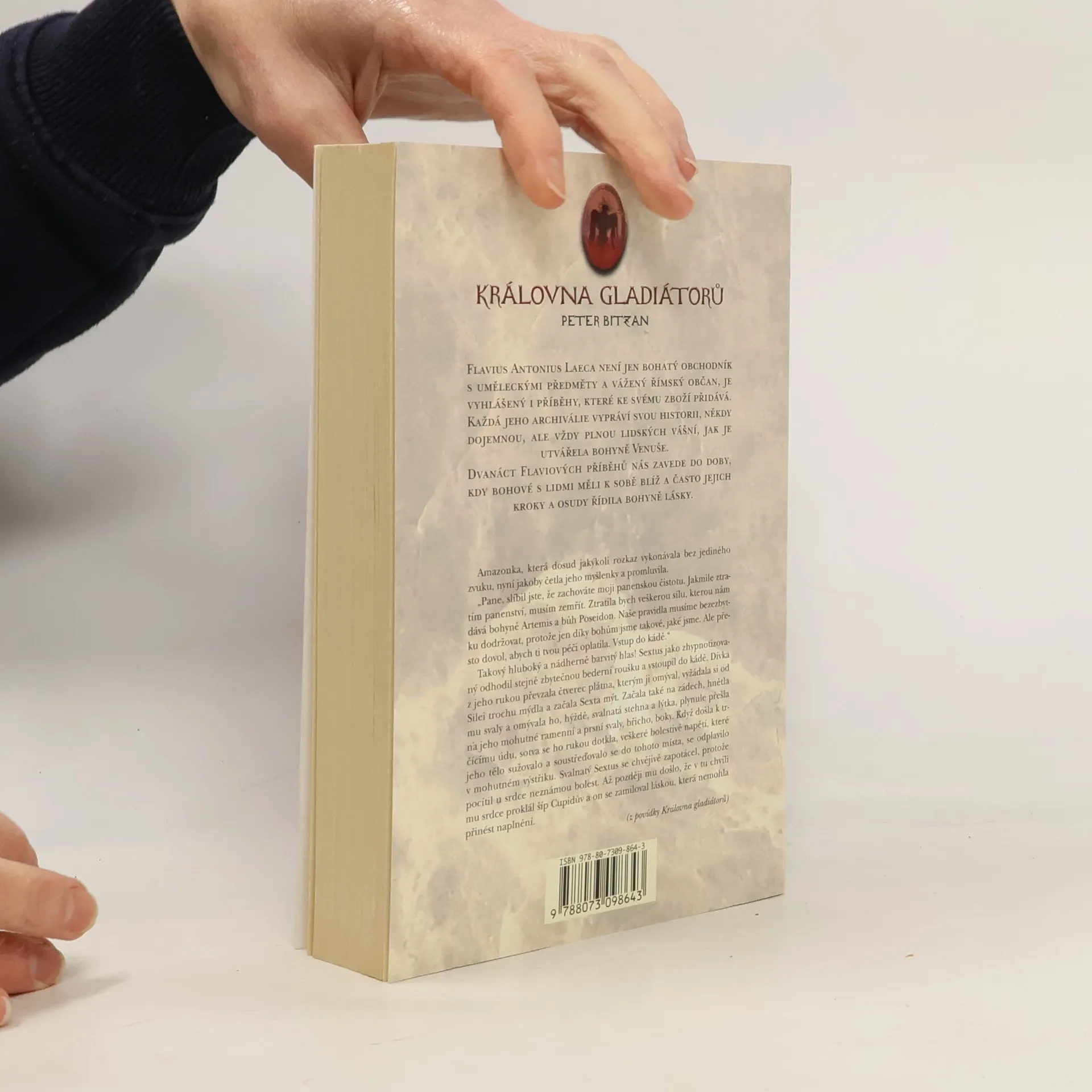 Flavius Antonius Laeca není jen bohatý obchodník s uměleckými předměty a vážený římský občan, je vyhlášený i příběhy, které ke svému zboží přidává. Každá jeho archiválie vypráví svou historii, někdy dojemnou, ale vždy plnou lidských vášní, jak je utvářela bohyně Venuše. Dvanáct Flaviových příběhů nás zavede do doby, kdy bohové s lidmi měli k sobě blíž a často jejich kroky a osudy řídila bohyně lásky. Erotické povídky.