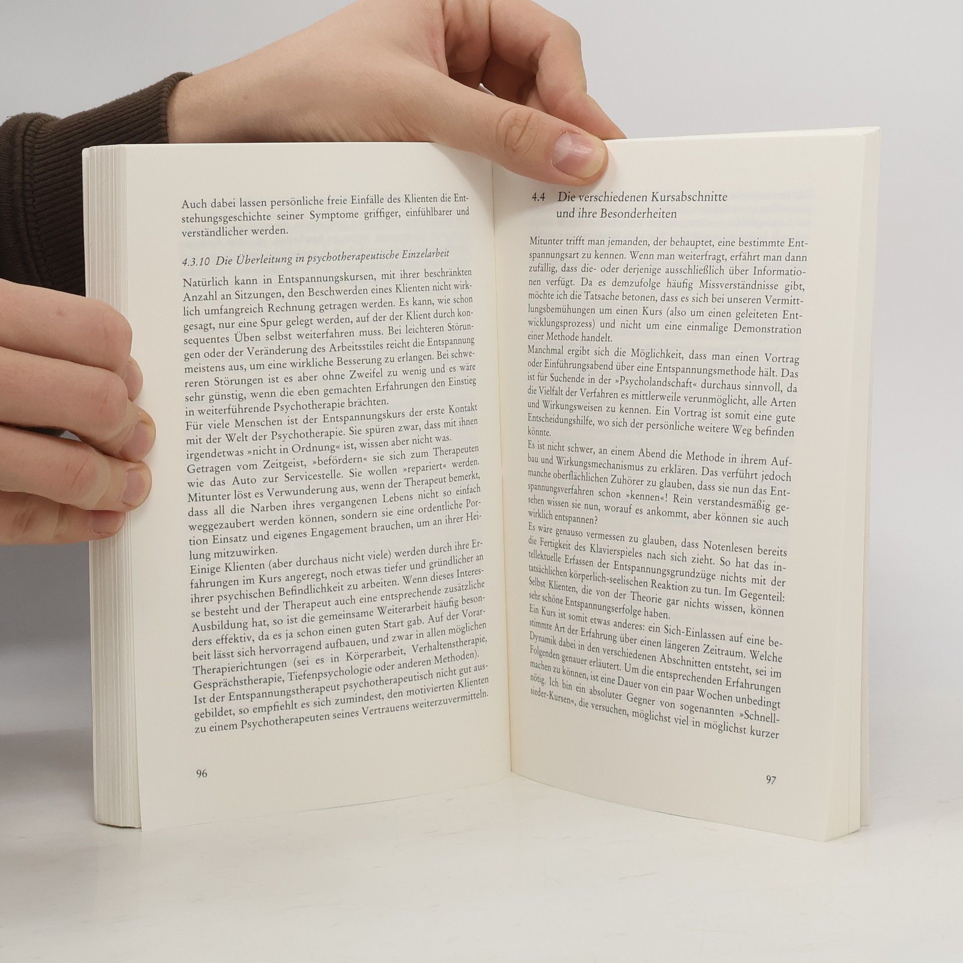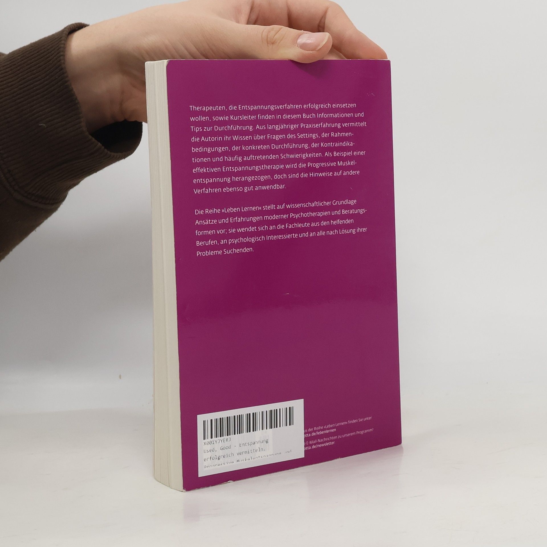 Entspannungsverfahren - seien es Progressive Muskelrelaxation, Autogenes Training, Yoga, Tai Chi, Imaginative Methoden, Biofeedback oder Funktionelle Entspannung und Atemtherapie - haben nachweislich eine heilende Wirkungbei vielen psychosomatischen Störungen und Erkrankungen. Als ergänzende Methoden im Rahmen einer Verhaltenstherapie oder Psychoanalyse haben sie darüber hinaus einen festen Platz in der psychotherapeutischen Versorgung.§§Therapeuten, die Entspannungsverfahren einsetzen wollen, sowie Kursleiter finden in diesem Buch Informationen und Tips zur erfolgreichen Durchführung. Aus langjähriger Praxiserfahrung vermittelt die Autorin ihr Wissen über Fragen des Settings, der Rahmenbedingungen, der konkreten Durchführung, der Kontraindikationen und häufig auftretenden Schwierigkeiten. Meist wird die Progressive Muskelentspannung als Beispiel einer erfolgreichen Entspannungsmethode herangezogen, doch sind die Hinweise auf andere Verfahren ebenso gut anwendbar.§§Das Buch hilft Therapeuten und Therapeutinnen, die Entspannungsverfahren erstmals einsetzen, Anfängerfehler zu vermeiden und schon die ersten Kurse mit Erfolg für die Teilnehmer abzuschließen.