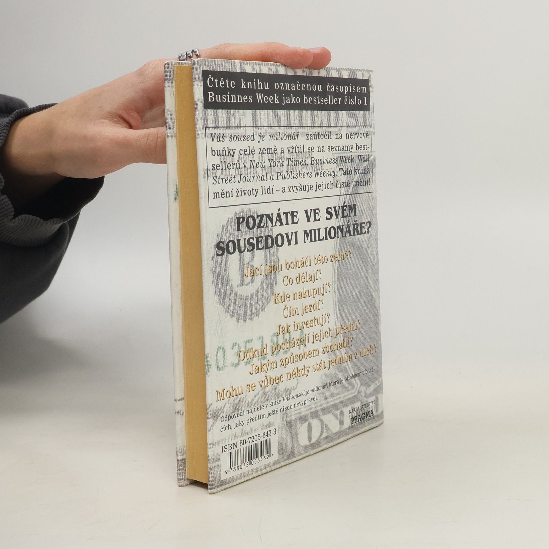 Váš soused je milionář zaútočil na nervové buňky celé země a vřítil se na seznamy bestsellerů v New York Times, Business Week, Wall Street Journal a Publishers Weekly. Tato kniha mění život lidí - a zvyšuje jejich čisté jmění! Jací jsou boháči této země? Co dělají? Kde nakupují? Čím jezdí? Jak investují? Odkud pocházejí jejich předci? Jakým způsobem zbohatli? Mohu se vůbec někdy stát jedním z nich? Odpovědi najdete v knize Váš soused je milionář, která je příběhem o boháčích, jaký předtím ještě nikdo nevyprávěl.