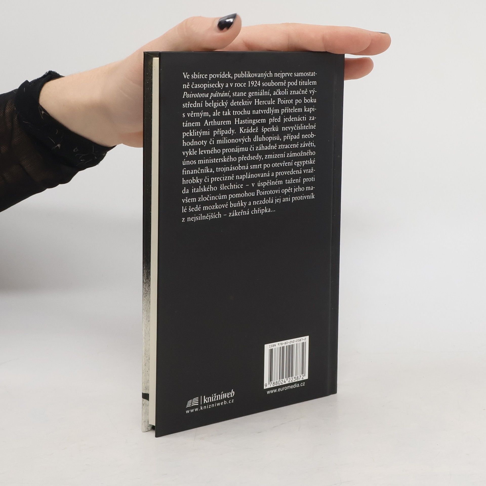 Do sbírky povídek pod titulem Poirotova pátrání zahrnula Agatha Christie jedenáct příběhů, v nichž belgický detektiv Hercule Poirot – za pomoci svých nezdolných šedých mozkových buněk a s věrným přítelem kapitánem Hastingsem po boku – úspěšně a s grácií sobě vlastní řeší mimo jiné krádeže šperků či milionových dluhopisů, případ ztracené závěti či levného bytu, únos ministerského předsedy nebo dobrodružství s egyptskou hrobkou. 2. vydání.