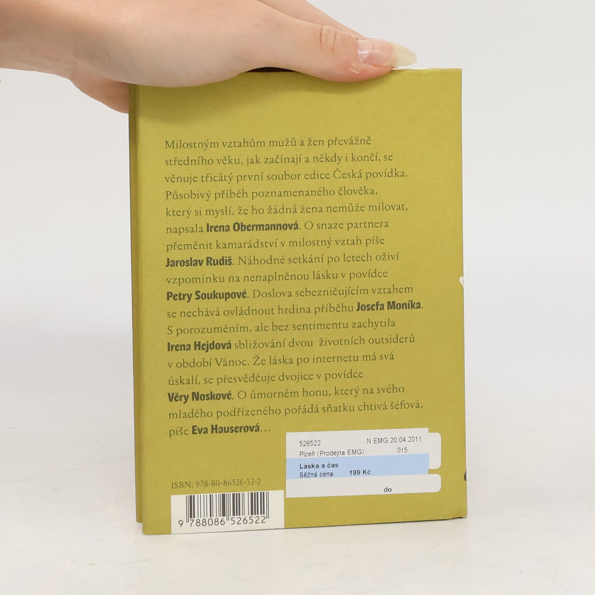 Povídky o vznikajících lidských vztazích, o tom, že téměř vždycky existuje naděje najít životního partnera. Působivý příběh poznamenaného člověka, který si myslí, že ho žádná žena nemůže milovat, napsala Irena Obermannová. O snaze přeměnit kamarádství v milostný vztah píše Jaroslav Rudiš. Náhodné setkání po letech oživí vzpomínku na nenaplněnou lásku v povídce Petry Soukupové. S porozuměním, ale bez sentimentu zachytila Irena Hejdová sbližování dvou životních outsiderů v období Vánoc.