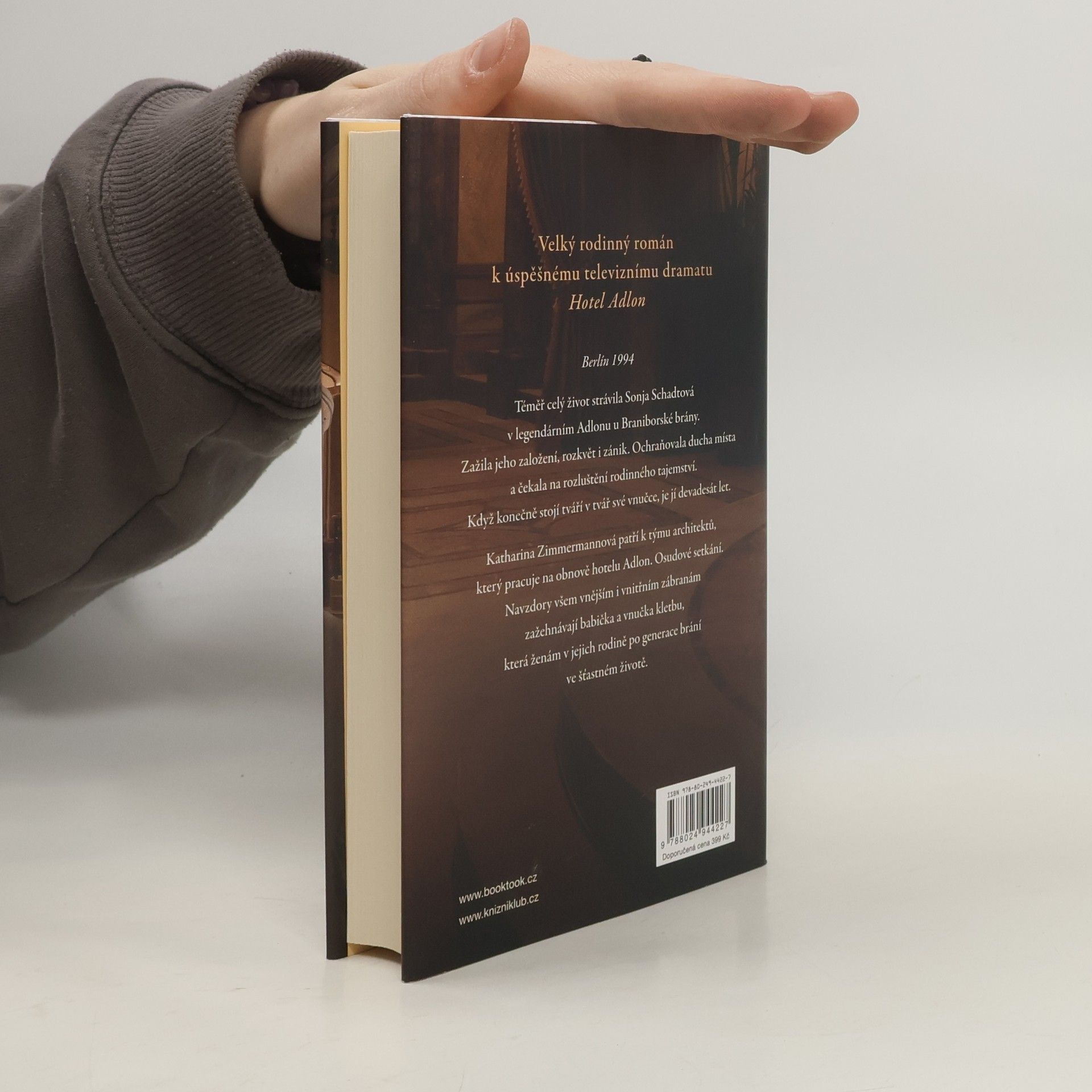 Barvitá rodinná historie, která začíná lží a končí láskou. Rodica Doehnertová, autorka scénáře úspěšné třídílné televizní série Hotel Adlon, nechává ve své knize znovu ožít strhující historii legendárního grandhotelu a rodin Schadtových a Adlonových. Mistrovsky přitom klene oblouk od založení hotelu v době císařství až k jeho novému otevření ve sjednoceném Německu. Rodinnými ságami Hotel Adlon a Hotel Sacher nadchla miliony diváků po celém světě a obrodila žánr televizního románu.