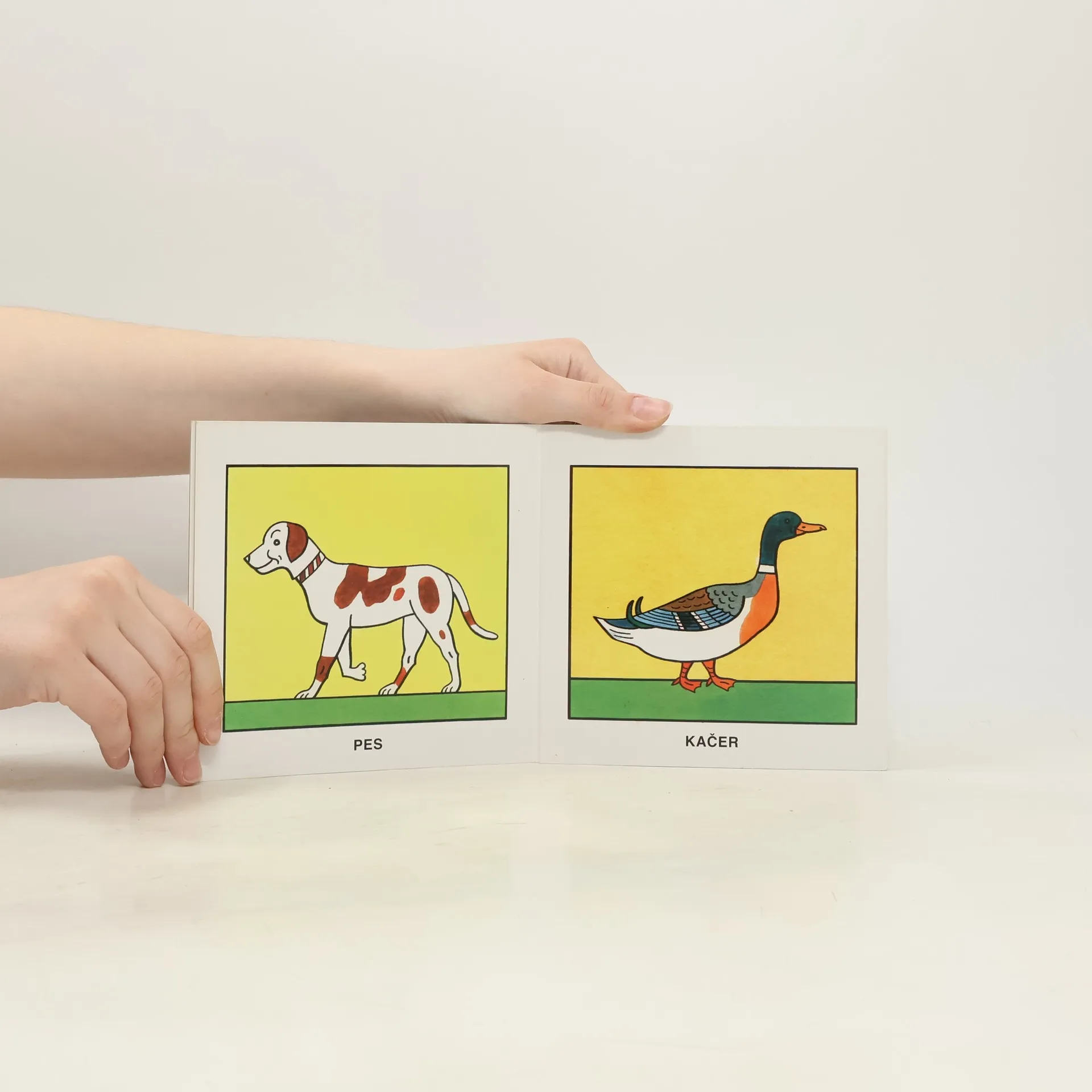 Malé rozkládací leporelo pro nejmenší: 12 jednoduchých obrázků zvířat v barevných ilustracích Josefa Lady, s kterými se děti mohou setkat převážně na venkově (kůň, kráva, slepice, husa...), ale také domácí mazlíčci (kočka a pes). Bez textu