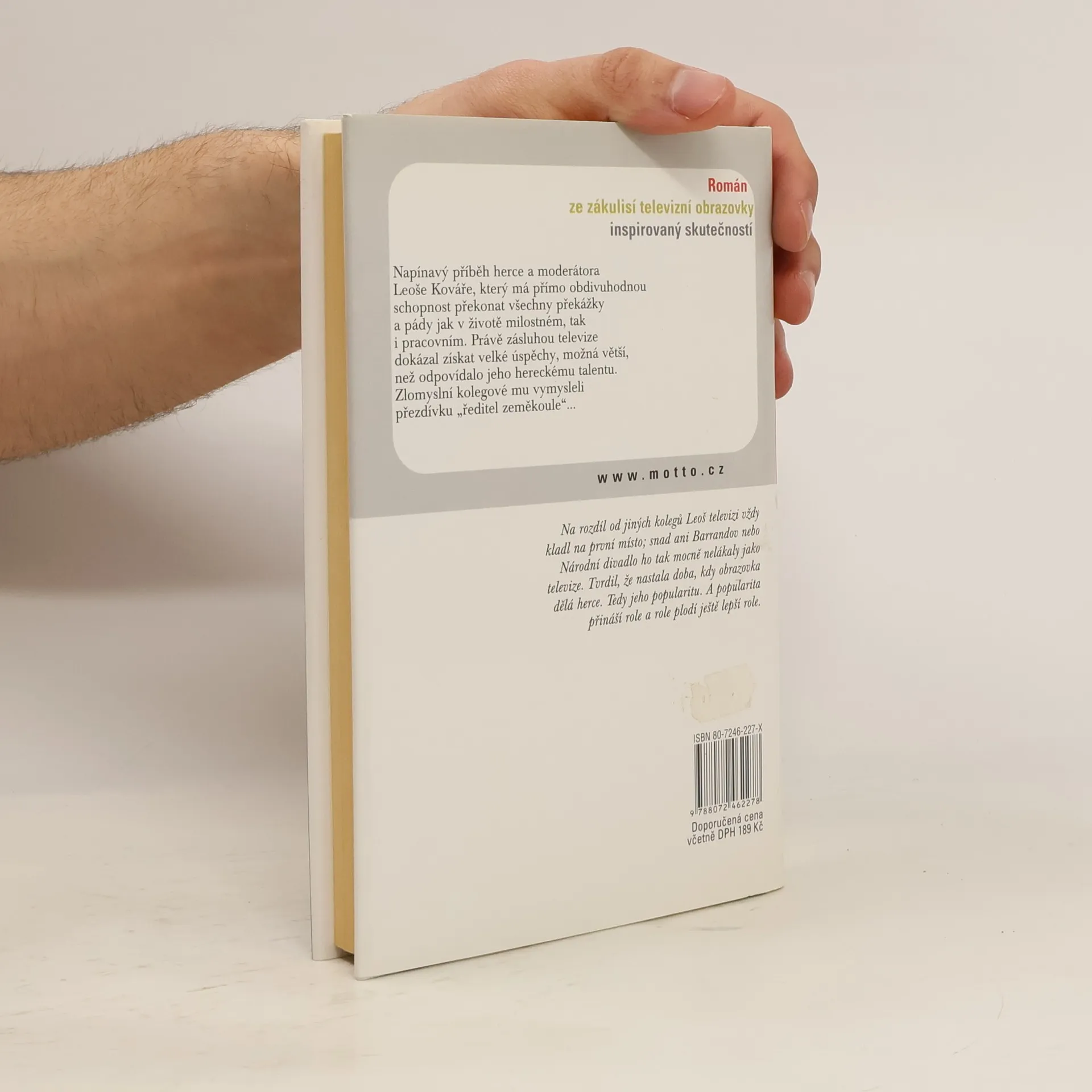 Román poněkud satirický, poněkud ironický a dost indiskrétní Román ze zákulisí televizní obrazovky inspirovaný skutečností. Napínavý příběh herce a moderátora Leoše Kováře, který má přímo obdivuhodnou schopnost překonat všechny překážky a pády jak v životě milostném, tak i pracovním.
