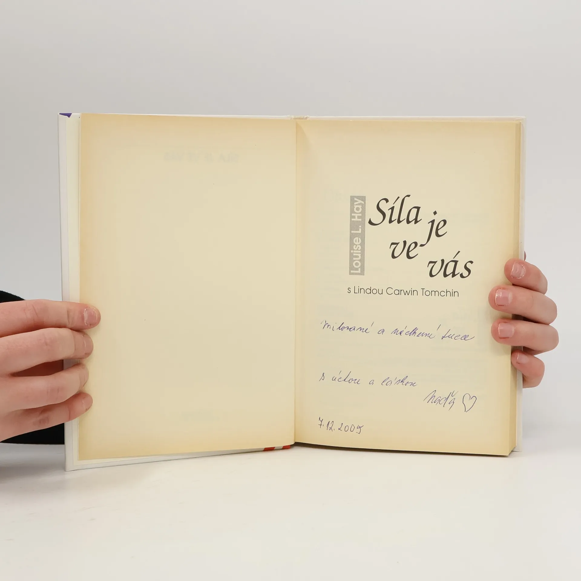 Další kniha úspěšné autorky vznikla jako rozšíření díla. Můžete uzdravit svůj život. Je třeba, abychom si uvědomili, že síla, kterou hledáme mimo nás, je naopak v nás, a že ji můžeme kdykoliv pozitivním způsobem použít. Kniha vám ukáže vaši sílu.