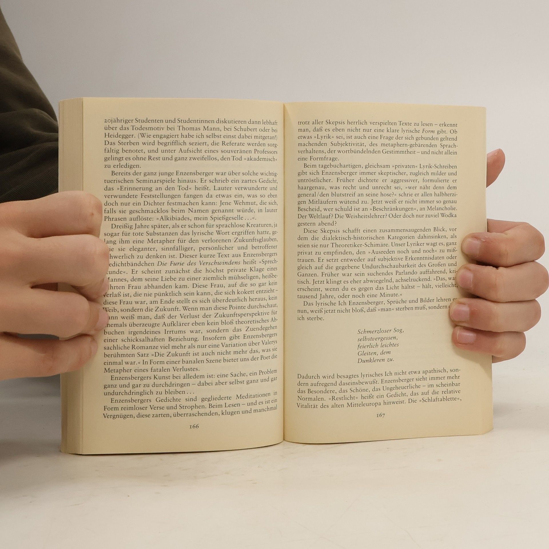 Dieser Band über Hans Magnus Enzensberger erscheint zu seinem siebzigsten Geburtstag. Kollegen, Freunde, Kritiker äußern sich zu Enzensbergers Werken, untersuchen in einzelnen Aufsätzen dessen lyrische, dramatische, essayistische Texte, sein Wirken als Übersetzer und Herausgeber. Sie tragen Erinnerungen, Wünsche, Ratschläge vor, sprechen über die Wirkungen seiner Arbeiten etwa in Deutschland oder in Italien seit den sechziger Jahren, über die Wandlungen und Konstanten im Denken und Tun des eigensinnigen Dichters.