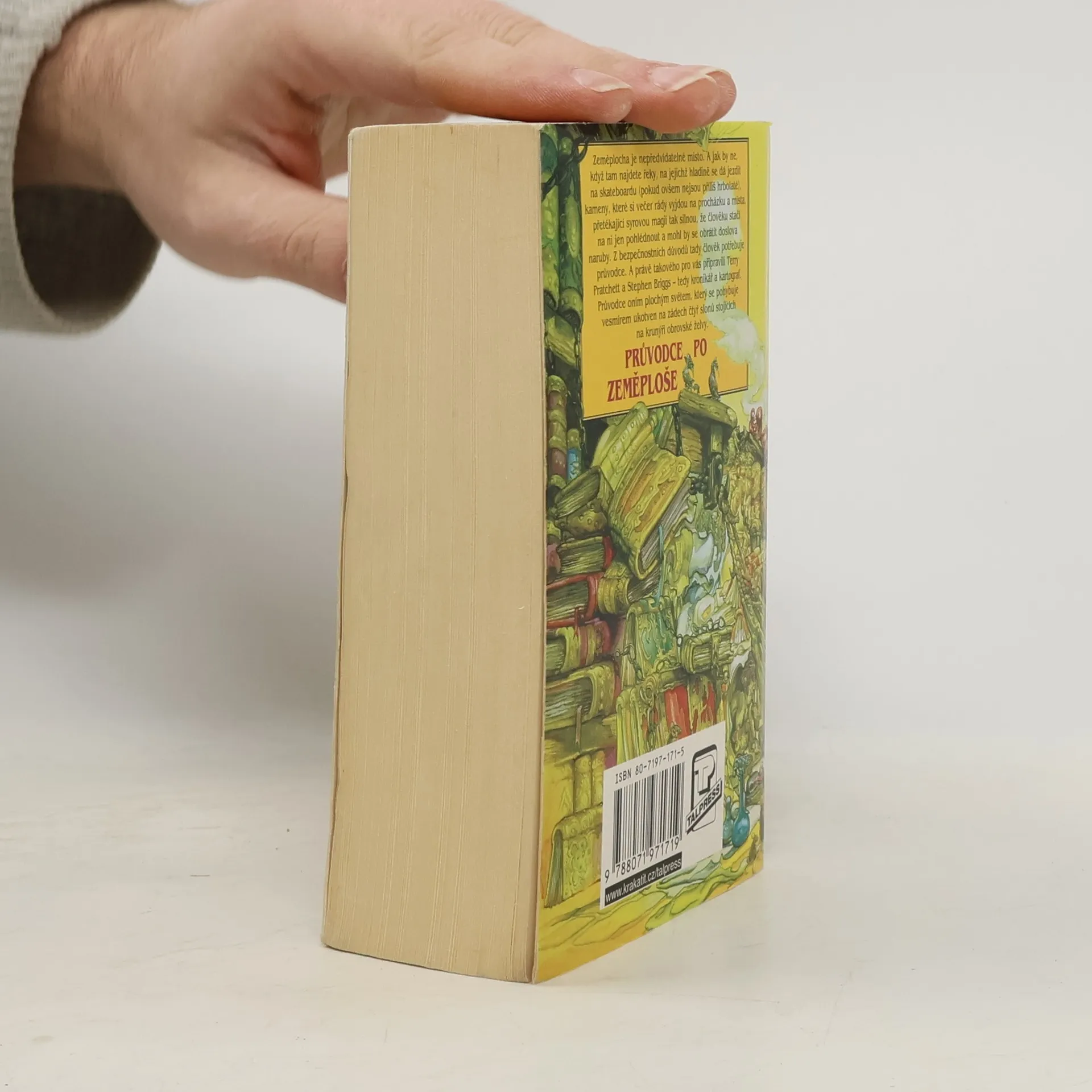 Zeměplocha je nepředvídatelné místo. A jak by ne, když tam najdete řeky, na jejichž hladině se dá jezdit na skateboardu (pokud ovšem nejsou příliš hrbolaté), kameny, které si večer rády vyjdou na procházku a místa, přetékající syrovou magií tak silnou, že člověku stačí na ni jen pohlédnout a mohl by se obrátit doslova naruby. Z bezpečnostních důvodů tady člověk potřebuje průvodce. A právě takového pro vás připravili Terry Pratchett a Stephen Briggs – tedy kronikář a kartograf. Průvodce oním plochým světem, který se pohybuje vesmírem ukotven na zádech čtyř slonů stojících na krunýři obrovské želvy.