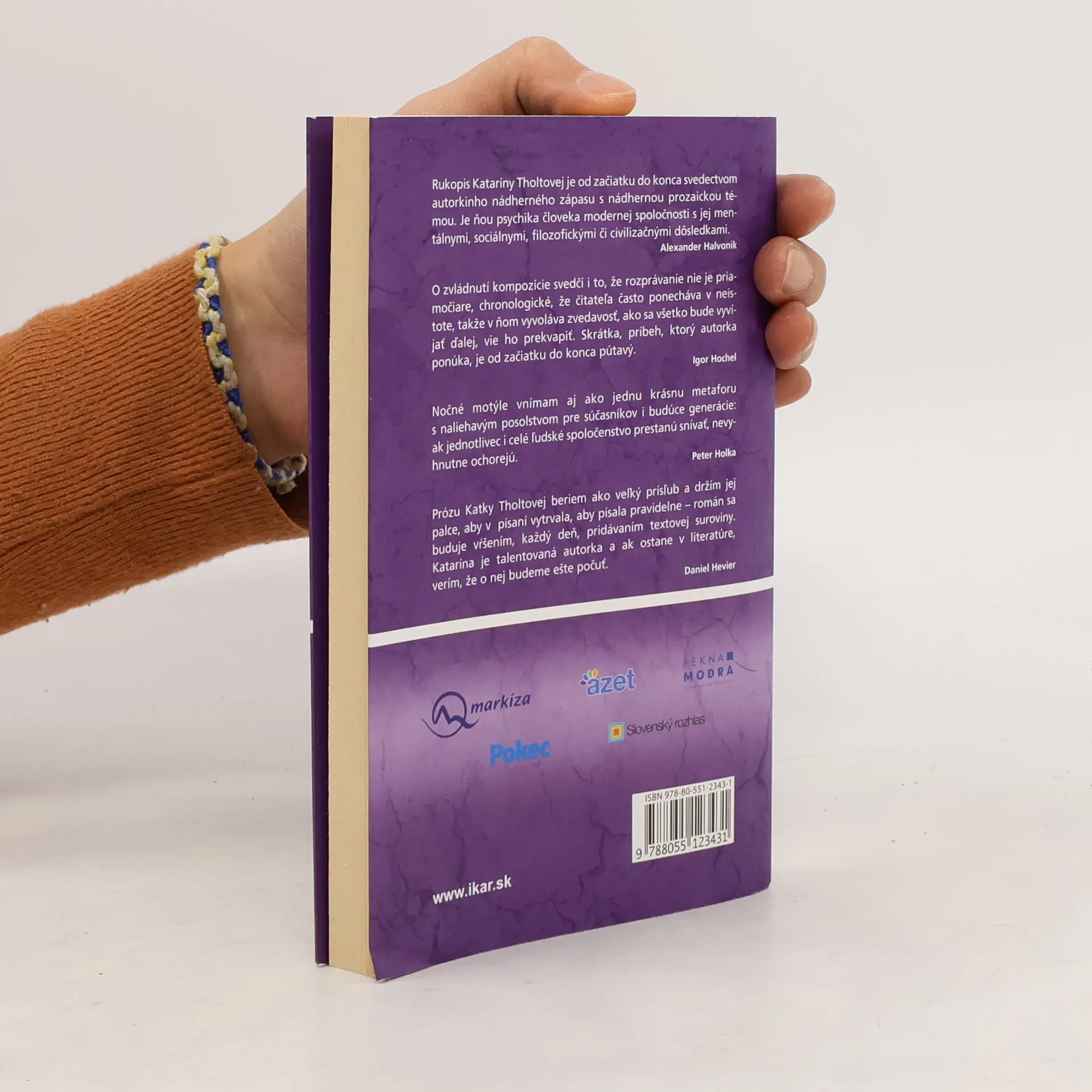 Víťazka Literárnej ceny 1.ročníka súťaže Mám talent Katarína Tholtová napísala skvelú prózu s nezvyčajnou témou - je ňou chronická nespavosť (insomnia). V románe Nočné motýle pútavo a plasticky stvárnila osudy štyroch ľudí, štyroch nočných motýľov žijúcich v jednom meste, ktorí vôbec nespia, no viac ako spánok im chýbajú sny. Stretnú sa vďaka čudáckemu psychológovi, ktorý je presvedčený, že práve v oblasti nespavosti je objaviteľom svetového významu a svoju teóriu potrebuje potvrdiť na skúmanej vzorke.. Štyria protagonisti, dve mladé ženy a dvaja muži, si založia zvláštne spoločenstvo platonických milovníkov spánku. Ich individuálne osudy prechádzajú zložitými osobnými a spoločenskými skúškami, vytvárajú dramatický, pútavý príbeh, v ktorom nechýbajú zvraty a prekvapujúce rozuzlenie. Autorka odhaľuje ľudský svet zvonka i zvnútra a hľadá hlbinné súvislosti medzi tým, čo sa deje v človeku a jeho okolí, čo ho deformuje, ubíja i povznáša. No ani pri tejto vážnej téme jej nechýba nadhľad, ľahké pero a potrebná štipka humoru.