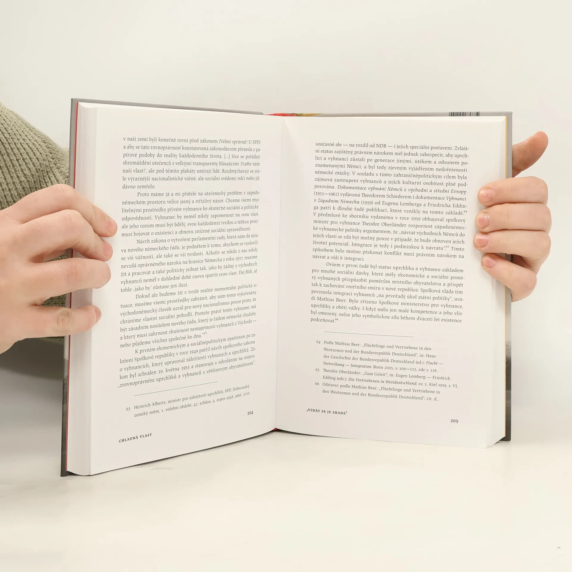 Andreas Kossert v této knize otřásá mýtem úspěšné integrace Němců odsunutých po roce 1945. Poprvé máme před sebou pravdivý obraz jejich osudu ve Spolkové republice — zemi, která se stala jejich novou, chladnou vlastí. Dozvídáme se, jak těžké byly jejich začátky a každodenní život v „zemi hospodářského zázraku“. Vyhnanci se ve své nové vlasti potýkali s mnohými problémy. Počínaje odporem místních proti prudkému návalu „cizinců“, který postavil na hlavu sociální strukturu zbytku Německa, až po předsudky a zášť spojenou s hospodářskou pomocí příchozím. To vše způsobilo rozdělení německé společnosti. Noví přistěhovalci, kteří začínali od nuly, byli však zároveň významnou hnací silou modernizace, bez nich by se žádný „hospodářský zázrak“ nekonal. Politický zájem o tuto skupinu obyvatel kontrastoval s izolací společenskou. Kossert provedl rozsáhlý výzkum tohoto opomíjeného aspektu německých dějin. Ve své knize působivě popisuje zkušenosti lidí, kteří byli během války násilně vytrženi ze svého prostředí a utrpěli obrovské hmotné i morální škody, a ptá se, jak to je a jejich potomky poznamenalo.