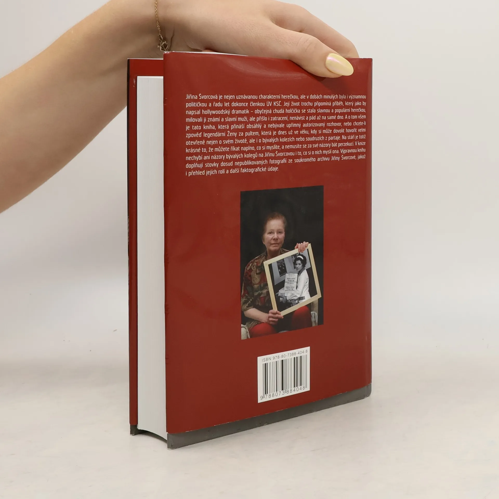 Herečka, recitátorka a bývalá komunistická funkcionářka Jiřina Švorcová se narodila 25. května 1928 v Kociánovicích u Hradce Králové. Absolvovala pražskou DAMU a v letech 1951-1989 byla členkou činohry Divadla na Vinohradech. V televizi začínala jako hlasatelka a během let v ní natočila stovky inscenací a her. Největší popularitu nejen u nás, ale i na hranicemi jí přinesla hlavní role Anny Holubové v seriálu Jaroslava Dietla Žena za pultem. V knize rozhovorů s ostříleným novinářem a publicistou Miroslavem Graclíkem Jiřina Švorcová hovoří nejen o své kariéře a osobním životě, ale vysvětluje a obhajuje i své politické názory.