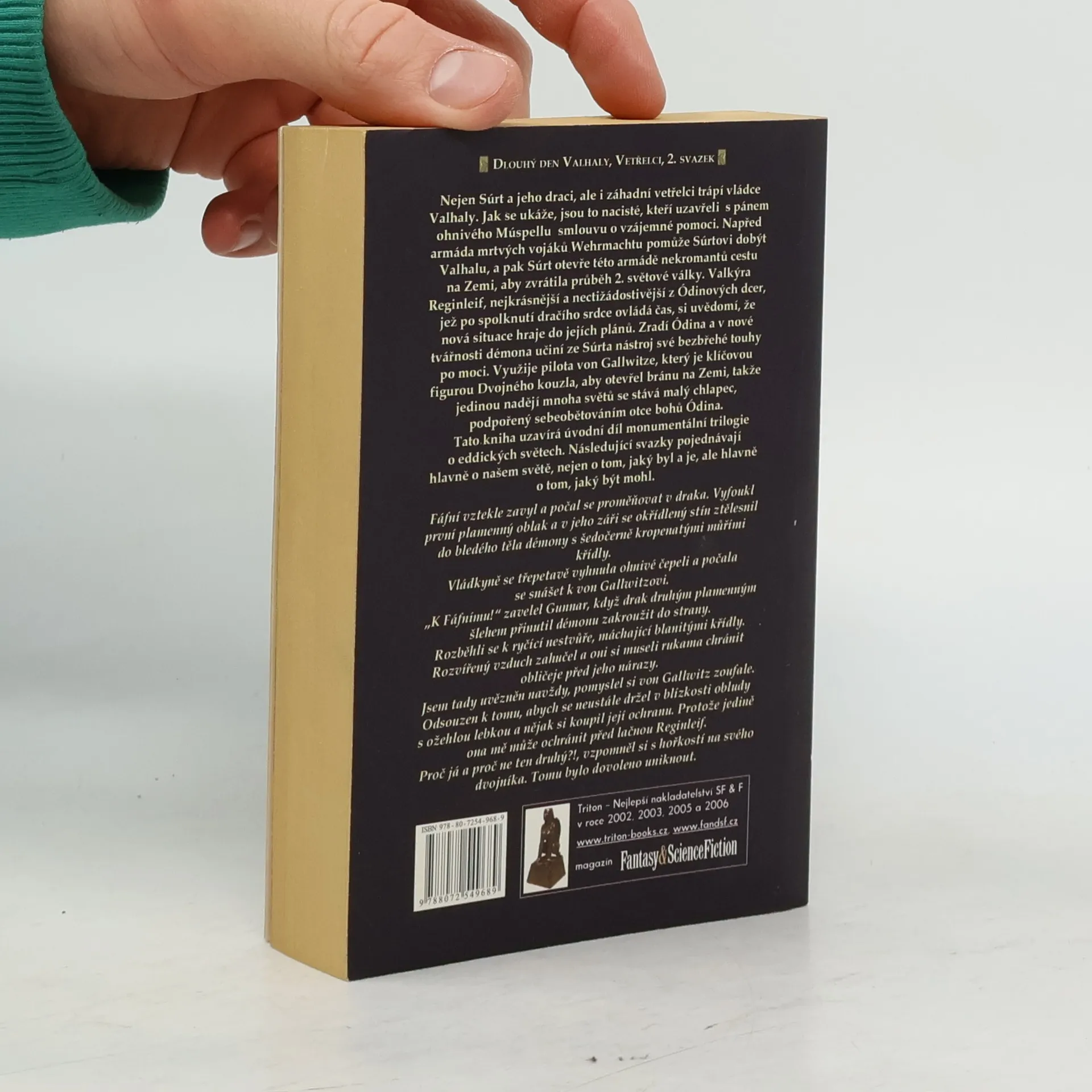 První kniha trilogie Valhala. druhá část ze dvou Nejen Súrt a jeho draci, ale i záhadní vetřelci trápí vládce Valhaly. Jak se ukáže, jsou to nacisté, kteří uzavřeli s pánem ohnivého Múspellu smlouvu o vzájemné pomoci. Napřed armáda mrtvých vojáků Wehrmachtu pomůže Súrtovi dobýt Valhalu, a pak Súrt otevře této armádě nekromantů cestu na Zemi, aby zvrátila průběh 2. světové války. Valkýra Reginleif, nejkrásnější a nectižádostivější z Ódinových dcer, jež po spolknutí dračího srdce ovládá čas, si uvědomí, že nová situace hraje do jejích plánů. Zradí Ódina a v nové tvářnosti démona učiní ze Súrta nástroj své bezbřehé touhy po moci. Využije pilota von Gallwitze, který je klíčovou figurou Dvojného kouzla, aby otevřel bránu na Zemi, takže jedinou nadějí mnoha světů se stává malý chlapec, podpořený sebeobětováním otce bohů Ódina. Tato kniha uzavírá úvodní díl monumentální trilogie o eddických světech. Následující svazky pojednávají hlavně o našem světě, nejen o tom, jaký byl a je, ale hlavně o tom, jaký být mohl. -- zdroj: www.legie.info --