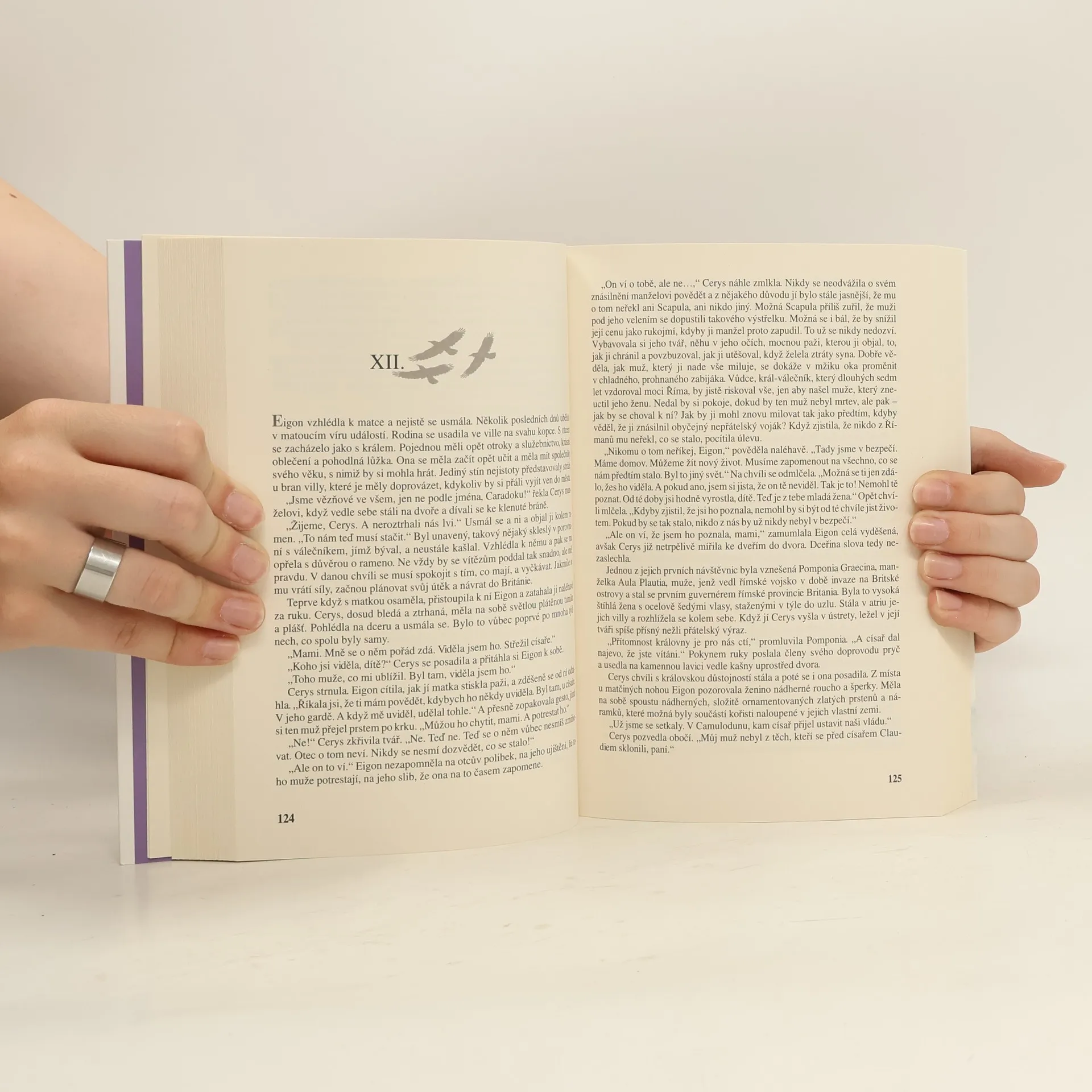 Román oblíbené autorky se opět odehrává ve dvou časových rovinách – v současnosti a keltsko-římském starověku. Pojítkem mezi oběma hlavními postavami, londýnskou vysokoškolskou učitelkou Jess a dcerou keltského krále Eigon, je děsivá zkušenost znásilnění a pronásledování. Opět čtenáře čeká mnoho nečekaných zvratů, v nichž se dnešek prolíná s historií. V té ožívá starověký Řím v prvních desetiletích císařství, v době svatého Petra a pronásledování křesťanů, v době vlády císařů Claudia a později i Nerona. Děj se pak vrací do Británie v 1. stol. n. l. Současný příběh se odehraje během jednoho léta ve Walesu a v Římě a dramatické prožitky hrdinky Jess také tady souvisejí s dávným příběhem ze starověku.