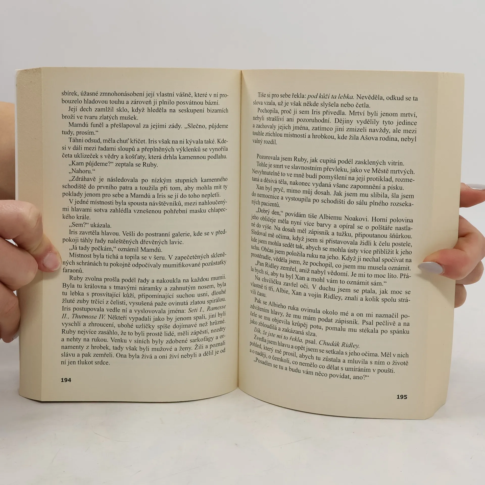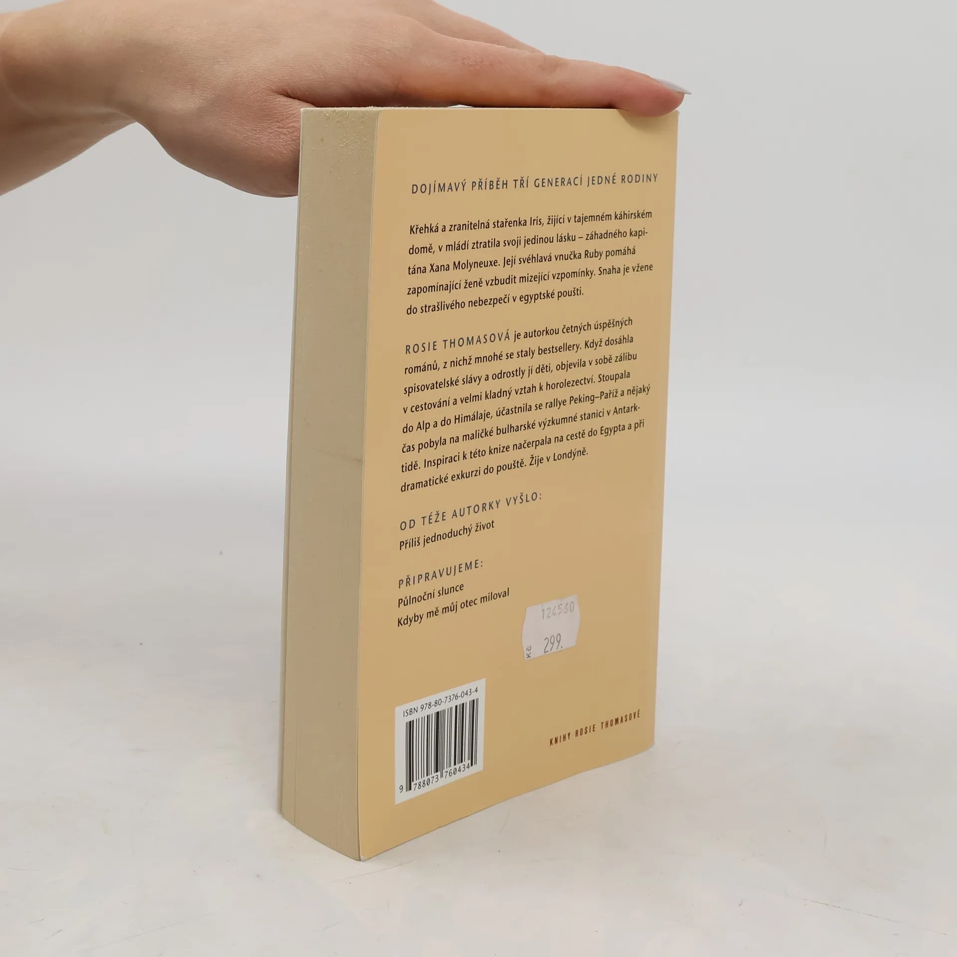 Vzrušující a vysoce dojímavý příběh, ve kterém se mísí láska, ztráta a vzdálenost mezi třemi generacemi jedné rodiny. Dvaaosmdesátiletá Iris, křehká, zapomnětlivá a zranitelná, je odkázána na péči svého služebníka Mamdooha. Do jejího zadušeného a klaustrofobii budícího starého domu v Káhiře neočekávaně vtrhne její problematická a svéhlavá vnučka Ruby. Poměry v rodině ji přiměly utéci z Anglie a hledat útěchu u své babičky, kterou už mnoho let neviděla. Mezi oběma ženami vzniká až nečekané pouto. Ruby Iris pomáhá zachytit mizející vzpomínky na třpytné kosmopolitní město, jakým byla Káhira za druhé světové války, kdy Iris potkala svoji jedinou skutečnou lásku - záhadného kapitána Xana Molyneuxe - a poté ho ztratila ve válečné vřavě. Pohroma, která tak záhy stihla Irisino srdce, ovlivnila život nejen jí, ale i její dceři a vnučce. Potřeba odkrýt Irisinu minulost a vybudovat Rubyině přítomnosti pevné základy dožene dvě ženy do strašlivého nebezpečí v egyptské poušti.
