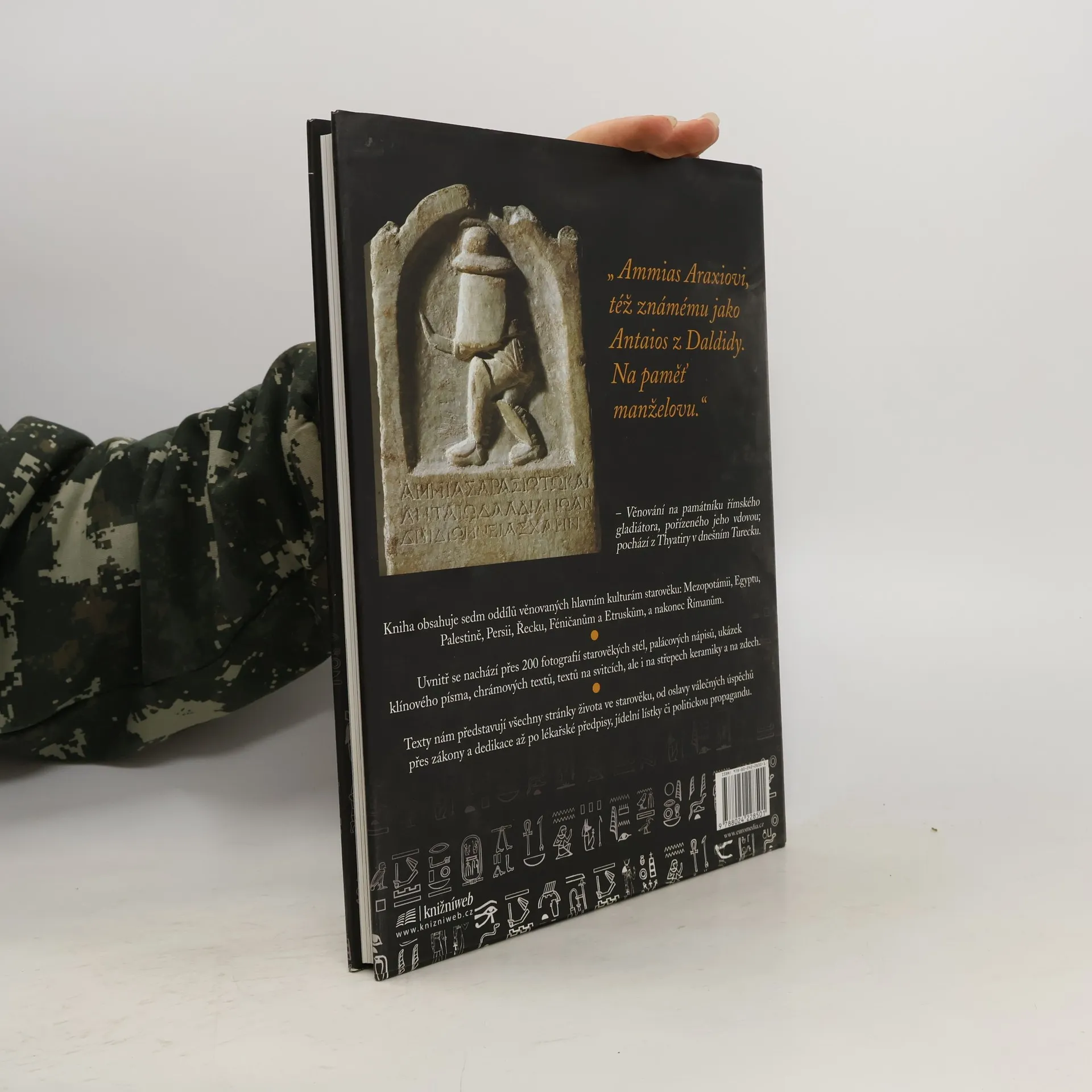 Kniha obsahuje sedm oddílů věnovaných hlavním kulturám starověku: Mezopotámii, Egyptu, Palestině, Persii, Řecku, Féničanům a Etruskům, a nakonec Římanům. Uvnitř se nachází přes 200 fotografií starověkých stél, palácových nápisů, ukázek klínového písma, chrámových textů, textů na svitcích, ale i na střepech keramiky a na zdech. Texty nám představují všechny stránky života ve starověku, od válečných tažení přes zákony a dedikace až po lékařské předpisy, jídelní lístky či politickou propagandu.