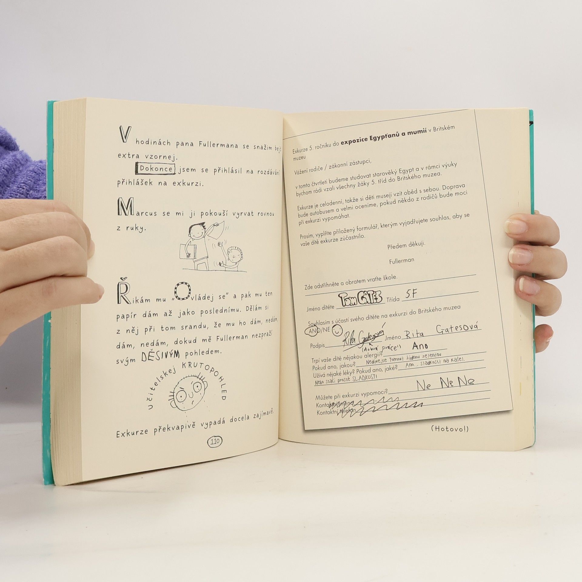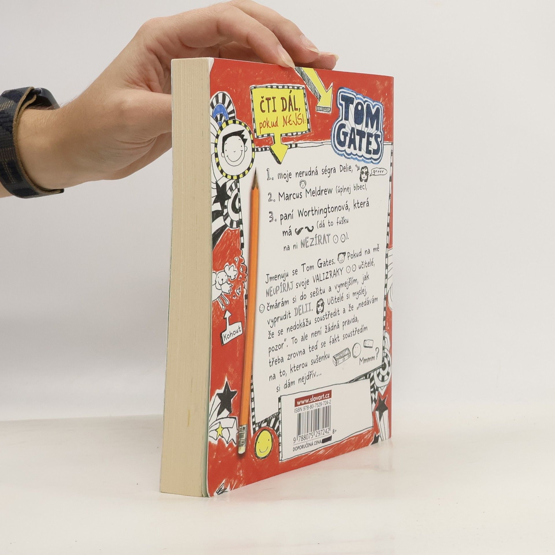 Tom Gates toho má ažaž – hodně kreslí, má s kámošem kapelu (no, tak rozhodně už maj název), fakt vynalézavě prudí svou otravnou ségru, louská komiksy, snaží se zapůsobit na Amy Porterovou... Jak má při tom všem ještě stíhat chodit do školy a psát úkoly? Natožpak včas? Život je zkrátka boj, a v tom Tomově není nouze o ujetý situace, ještě ujetější výmluvy a dotěrný pohledy učitele Fullermana. Jeho deník plnej malůvek a skopičin tě zaručeně pobaví!