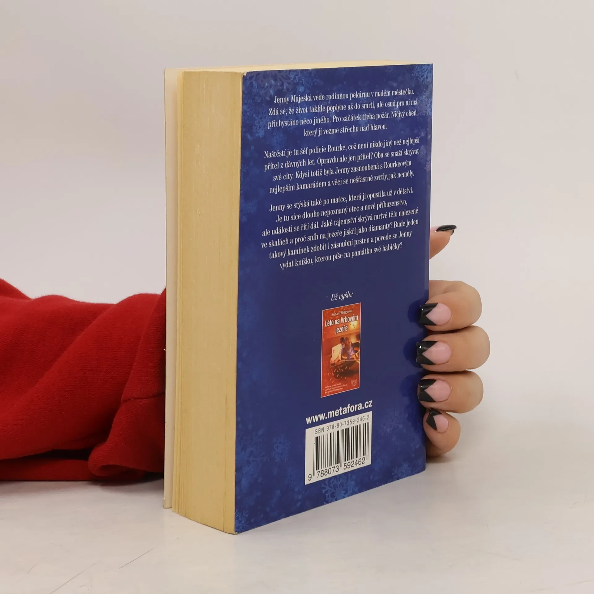 Jenny Majeská dospěla a po babiččině smrti vede rodinnou pekárnu. Ničivý požár, ji však v jediné chvíli připraví o všechno. Naštěstí je tu šéf policie Rourke, což není nikdo jiný než nejlepší přítel z dávných let. Opravdu ale jen přítel? Z minulých let jim oběma zbyl jenom žal a pocit viny... Jenny se stýská také po matce, která ji opustila už v dětství. Nečekaně se sice objeví její otec, ale události se řítí dál. Jaké tajemství skrývá mrtvé tělo nalezené ve skalách a proč sníh na jezeře jiskří jako diamanty? Bude jeden takový kamínek zdobit i zásnubní prsten a povede se Jenny vydat knížku, kterou píše na památku své babičky?