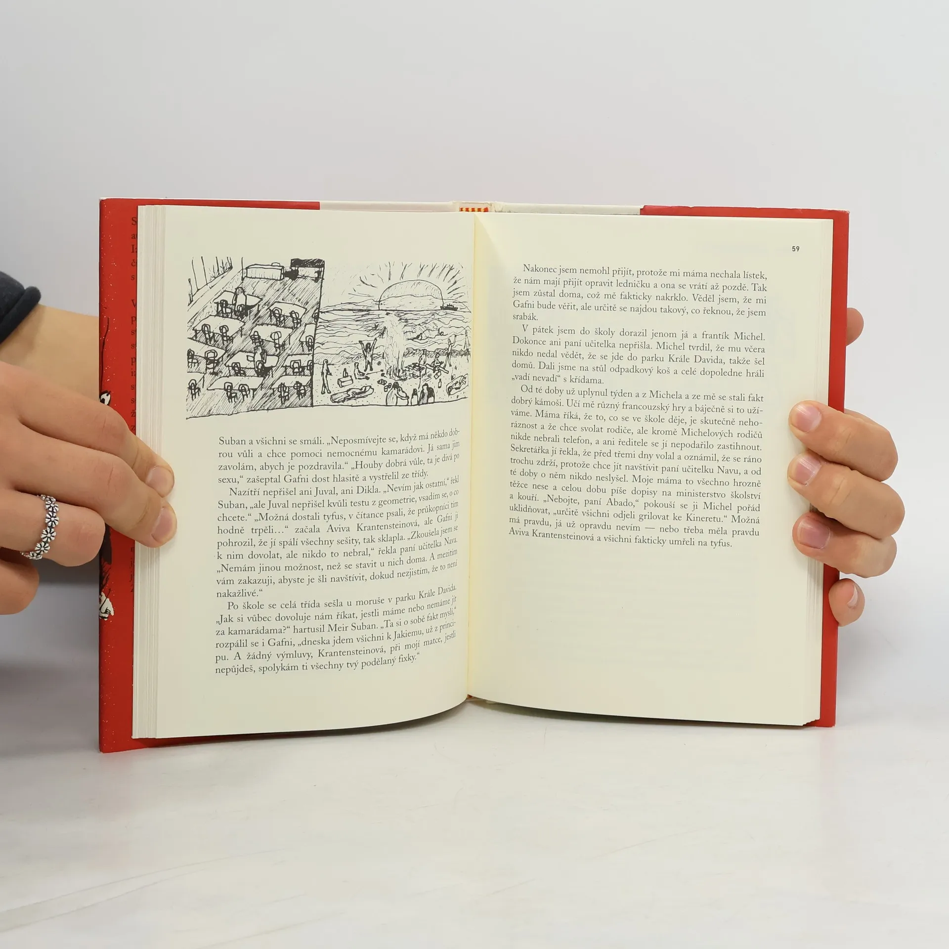 Soubor dvaadvaceti krátkých povídek seznamuje českého čtenáře s tvorbou úspěšného moderního izraelského autora. V krátkých, často absurdně či bizarně vypointovaných povídkách na nejrůznější motivy se autor snaží nenápadně zachytit nejdůležitější traumata, jimiž dodnes trpí současná izraelská společnost. Skutečnost reflektuje velmi často očima malého dítěte či dospívajícího hrdiny, který po svém vnímá a musí se vyrovnat se všemi negativními odkazy minulého i současného světa - od pronásledování a koncentráků přes palestinsko-izraelskou válku až k projevům nejnovějšího terorismu. Povídky ve zkratce, s nadhledem, a často se sžíravou ironií, zavádějí čtenáře mezi lidi těžce poznamenané minulostí a rozčarované přítomností, kteří se smutkem přijímají absurdnost svého každodenního života.