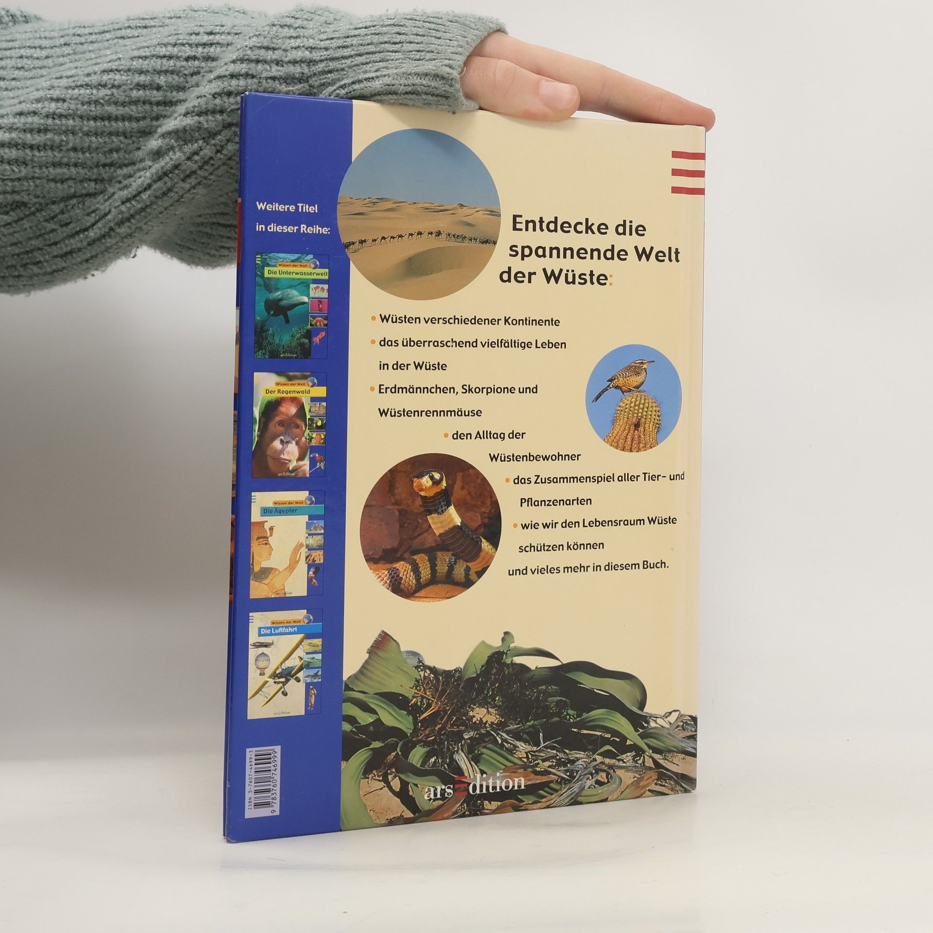 Entdecke die spannende Welt der Wüste: Wüsten verschiedener Kontinente, das überraschend vielfältige Leben in der Wüste, Erdmännchen, Skorpione und Wüstenrennmäuse, den Alltag der Wüstenbewohner, das Zusammenspiel aller Tier- und Pflanzenarten, wie wir den Lebensraum Wüste schützen können ... (Quelle: Buchdeckel).