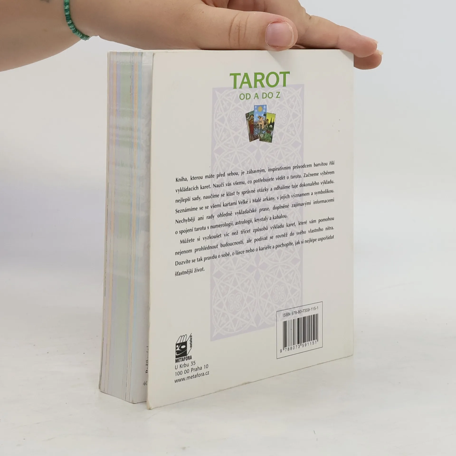 Podtitul: Obdivuhodný svět vykládacích karet a jejich významů Kniha je zábavným, inspirativním průvodcem barvitou říší vykládacích karet. Naučí vás všemu, co potřebujete vědět o tarotu. Začneme výběrem nejlepší sady, naučíme se klást ty správné otázky a odhalíme taje dokonalého výkladu. Seznámíme se se všemi kartami Velké i Malé arkány, s jejich významem a symbolikou. Nechybějí ani rady ohledně vykladačské praxe, doplněné zajímavými informacemi o spojení tarotu s numerologií, astrologií, krystaly a kabalou. Můžete si vyzkoušet víc než třicet způsobů výkladu karet, které vám pomohou nejenom prohlédnout budoucností, ale podívat se rovněž do svého vlastního nitra. Dozvíte se tak pravdu o sobě, o lásce nebo o kariéře a pochopíte, jak si nejlépe uspořádat šťastnější život.