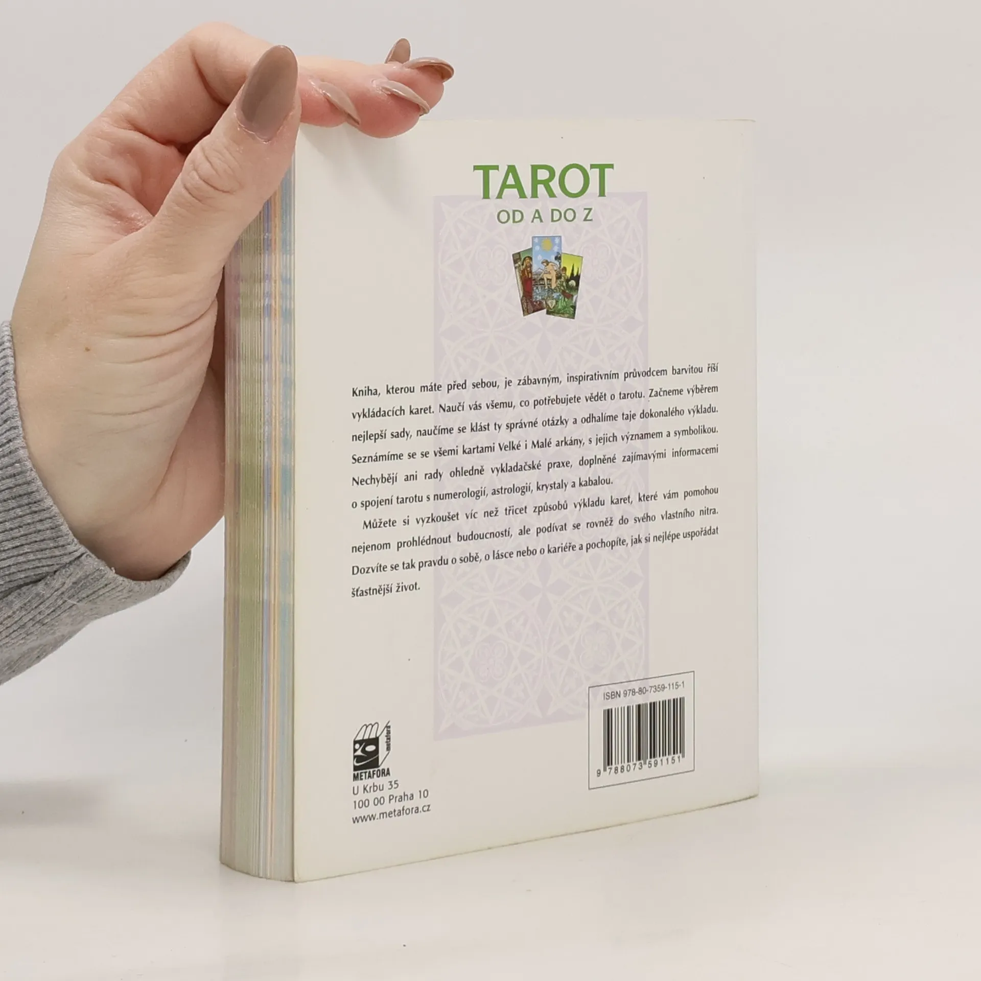 Podtitul: Obdivuhodný svět vykládacích karet a jejich významů Kniha je zábavným, inspirativním průvodcem barvitou říší vykládacích karet. Naučí vás všemu, co potřebujete vědět o tarotu. Začneme výběrem nejlepší sady, naučíme se klást ty správné otázky a odhalíme taje dokonalého výkladu. Seznámíme se se všemi kartami Velké i Malé arkány, s jejich významem a symbolikou. Nechybějí ani rady ohledně vykladačské praxe, doplněné zajímavými informacemi o spojení tarotu s numerologií, astrologií, krystaly a kabalou. Můžete si vyzkoušet víc než třicet způsobů výkladu karet, které vám pomohou nejenom prohlédnout budoucností, ale podívat se rovněž do svého vlastního nitra. Dozvíte se tak pravdu o sobě, o lásce nebo o kariéře a pochopíte, jak si nejlépe uspořádat šťastnější život.