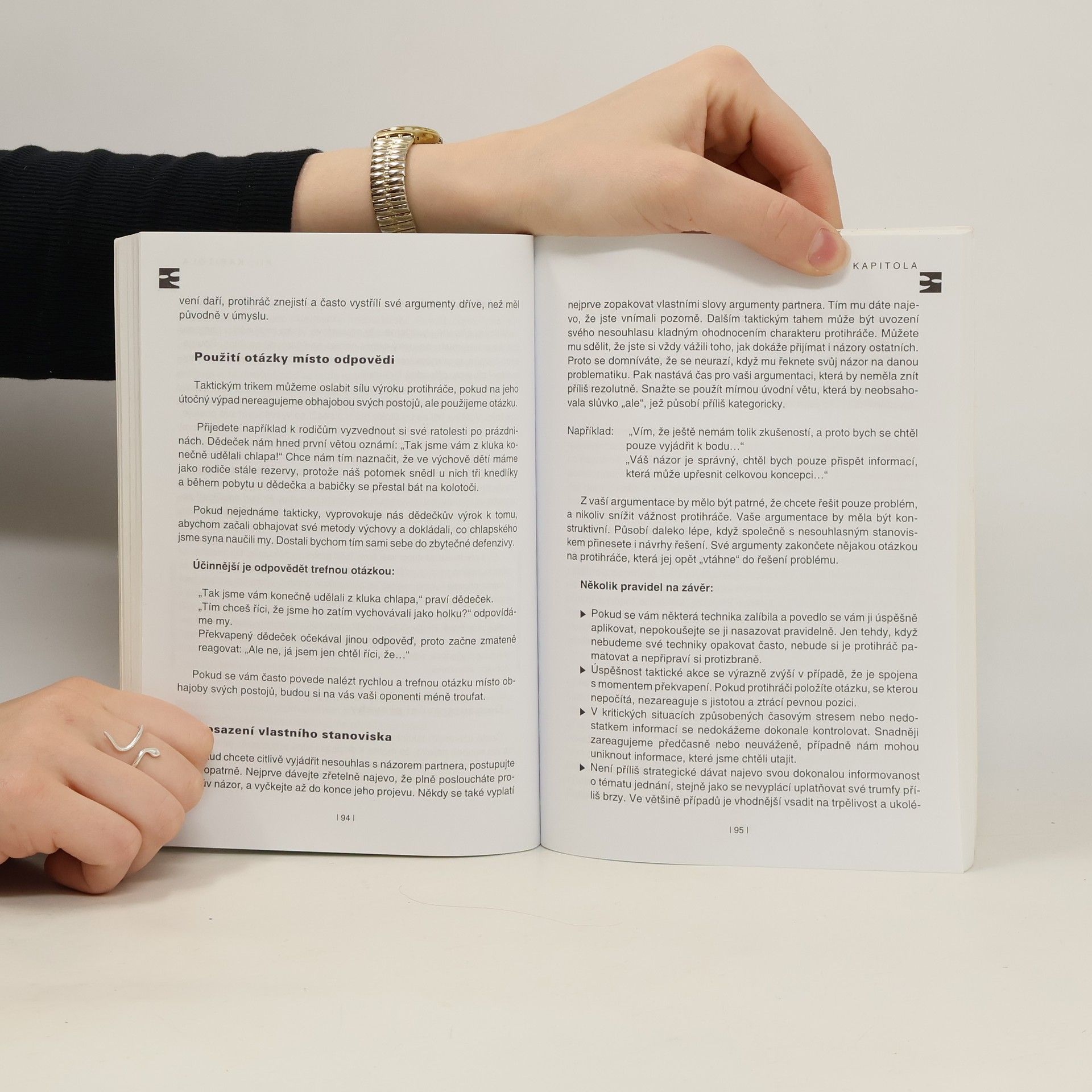 Publikace si klade za cíl komplexně a přehledně poskytnout rady a návody, jak přistoupit k přesvědčování oponenta a následnému vyjednávání s co největším efektem. Publikace obsahuje návody a rady, jak se připravit na jednání, jak posoudit partnera, a poznat jeho slabiny, jak jej sugestivně ovlivnit a jaké triky při tom využít. Stejně tak v knize najdeme návod na možnosti, jak se proti podobným trikům bránit, jak trénovat úspěšné vyjednávání, jak rozpoznat pravdu od lži apod. Rozsáhlou částí je i kapitola o tom, jak získat informace, které potřebujeme před jednáním, jak lze vhodným způsobem vyladit oponenta, aby nám je bezelstně poskytl.