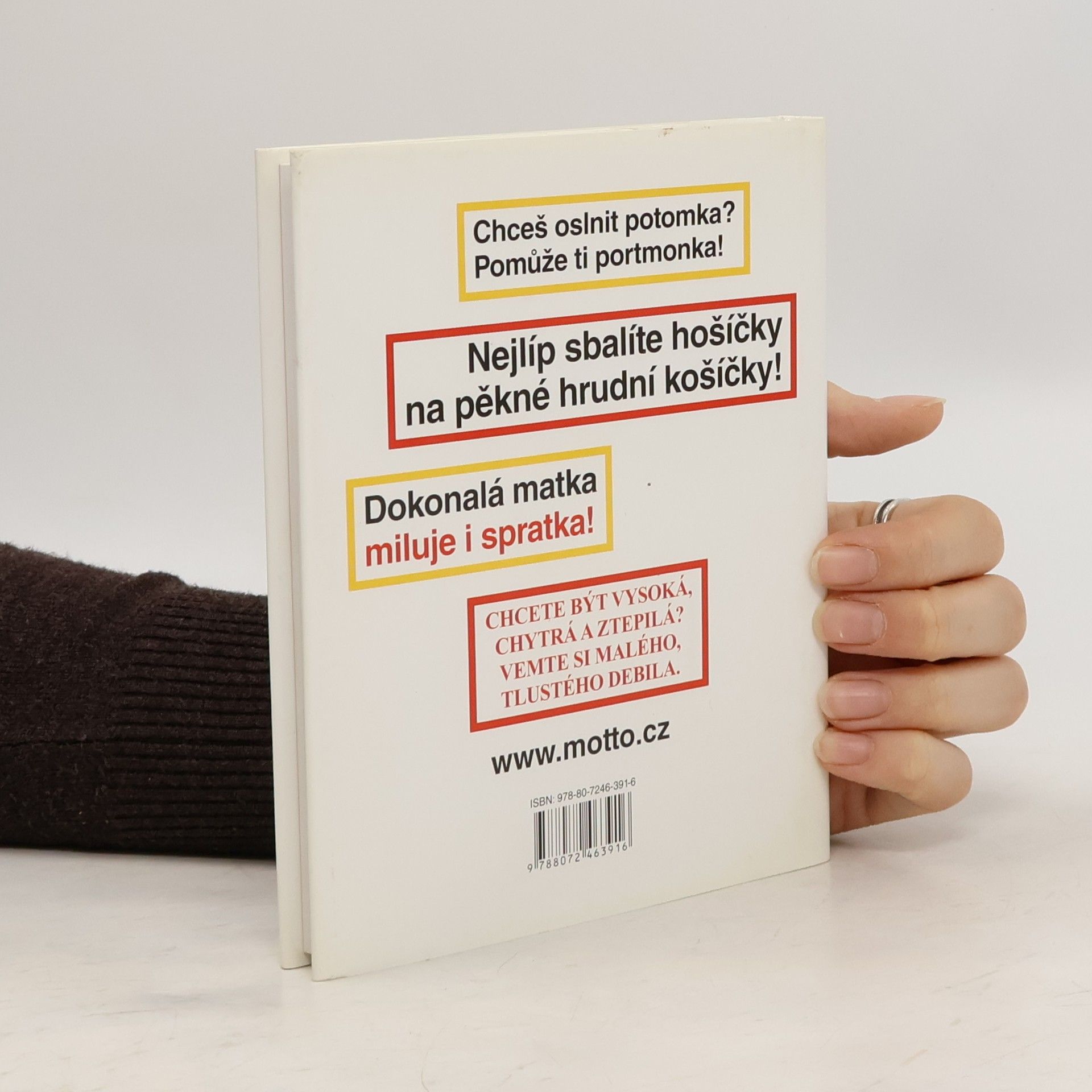 Chceš oslnit potomka? Pomůže ti portmonka! Nejlíp sbalíte hošíčky na pěkné hrudní košíčky! Dokonalá matka miluje i spratka! Chcete být vysoká, chytrá a ztepilá? Vemte si malého, tlustého debila. Váz., 112 stran