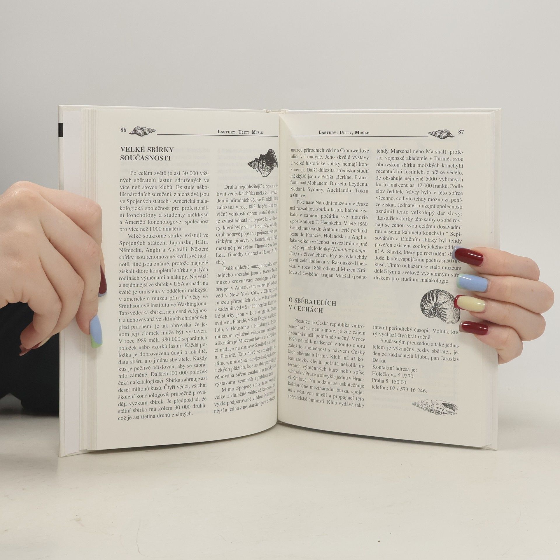 Autor ve své knize nabízí zájemcům o sběratelství obdivuhodných výtvorů přírody množství cenných informací a praktických rad, doplněných i krátkým nahlédnutím do historie objevování lastur a množstvím barevných fotografií. Závěr knihy tvoří zážitky z jeho cest. Příroda je nejkrásnější uměleckou galerií světa a autor této knihy si je toho dobře vědom. Poodkrývá čtenářům pouze malou část z krás, které nám příroda stále ještě nabízí, ačkoliv se k ní mnohdy nechováme příliš šetrně.