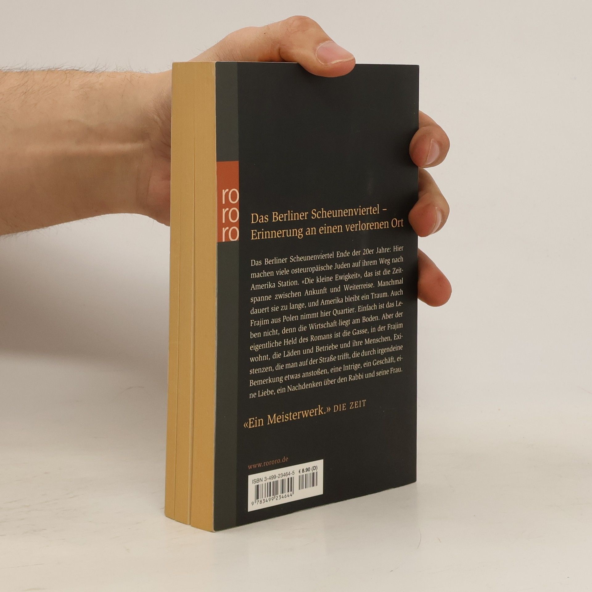 Das Berliner Scheunenviertel – Erinnerung an einen verlorenen Ort Das Berliner Scheunenviertel Ende der 20er Jahre: Hier machen viele osteuropäische Juden auf ihrem Weg nach Amerika Station. “Die kleine Ewigkeit”, das ist die Zeitspanne zwischen Ankunft und Weiterreise. Manchmal dauert sie zu lange und Amerika bleibt ein Traum. Auch Fraijim aus Polen nimmt hier Quartier. Einfach ist das Leben nicht, denn die Wirtschaft liegt am Boden. Aber der eigentliche Held des Romans ist die Gasse, in der Frajim wohnt, die Läden und Betriebe und ihre Menschen, Existenzen, die man auf der Straße trifft, die durch irgendeine Bemerkung etwas anstoßen, eine Intrige, ein Geschäft, eine Liebe, ein Nachdenken über den Rabbi und seine Frau. “Ein Meisterwerk” (Die Zeit)