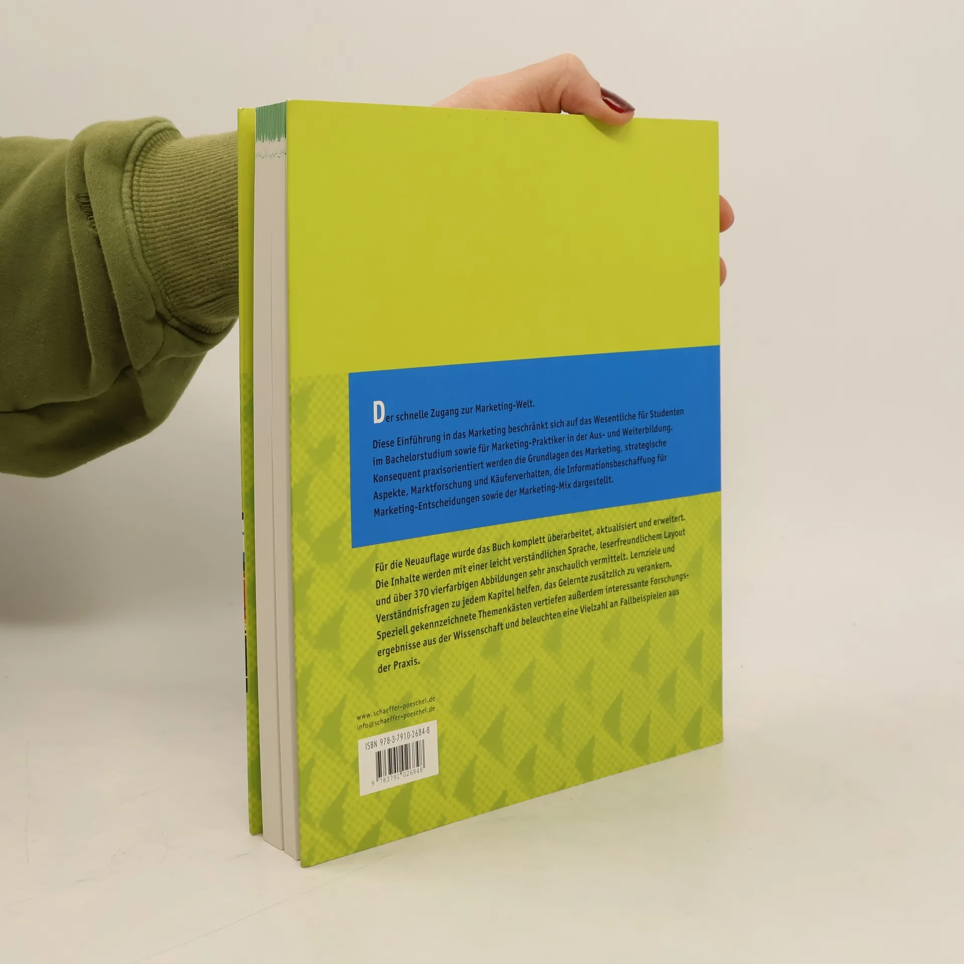 Schneller Zugang zur Marketing-Welt. Im Gegensatz zu vielen anderen, theorielastigen Marketing-Lehrbüchern beschränkt sich diese Einführung auf das Wesentliche für das Grund- bzw. Bachelorstudium: Konsequent praxisorientiert werden die Grundlagen des Marketing, strategische Aspekte, Marktforschung und der Marketing-Mix dargestellt. Für die Neuauflage wurde der Titel komplett überarbeitet, aktualisiert und um den Bereich Konsumentenverhalten sowie eine umfangreiche Fallstudie erweitert, die alle behandelten Marketinginstrumente abdeckt. Die gut verständliche Sprache, Lernziele, Verständnisfragen und eine Vielzahl von Praxisbeispielen erleichtern Studenten und Marketing-Praktikern in der Aus- und Weiterbildung den Einstieg in die Thematik.