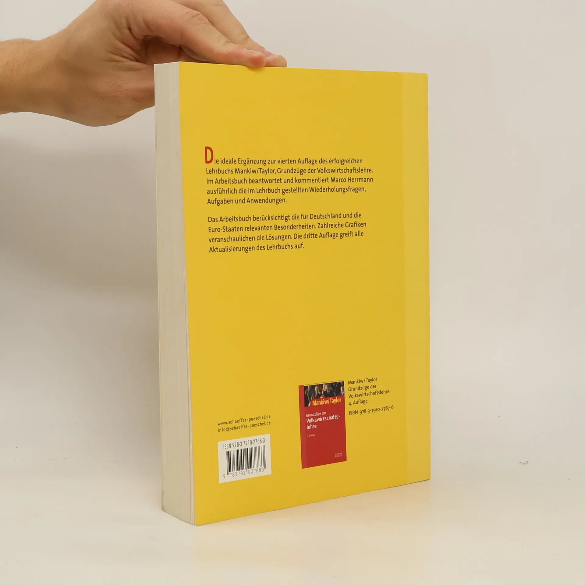 Die ideale Ergänzung zu N. Gregory Mankiws erfolgreichem Lehrbuch „Grundzüge der Volkswirtschaftslehre“. Im Arbeitsbuch beantwortet und kommentiert Marco Herrmann ausführlich die im Lehrbuch gestellten Wiederholungsfragen, Aufgaben und Anwendungen. Dabei werden die für Deutschland und die Euro-Staaten relevanten Besonderheiten berücksichtigt. Zahlreiche Grafiken veranschaulichen die Lösungen. Die dritte Auflage greift alle Aktualisierungen des Lehrbuchs auf.