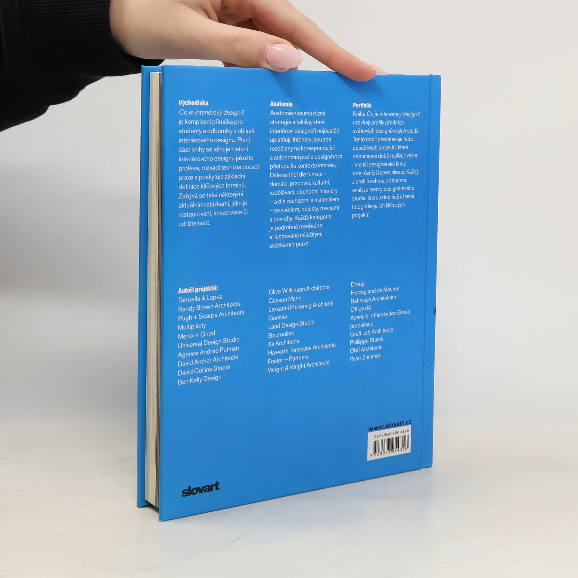 Komplexní příručka pro studenty a odborníky v oblasti interiérového designu. Od historie interiérového designu jako profese po teorii na pozadí praxe a základní definice klíčových termínů. Zabývá se aktuálními otázkami jako je restaurování, konzervace či udržitelnost. Zkoumá různé strategie a taktiky, které interiéroví designéři nejčastěji uplatňují. Interiéry jsou rozděleny na korespondující a autonomní podle designérova přístupu ke kontextu interiéru. Dále se třídí dle funkce – domácí, pracovní, kulturní, vzdělávací, obchodní interiéry – a podle zacházení s materiálem – se světlem, objekty, rovinami a povrchy. Každá kategorie je podrobně rozebrána a ilustrována náležitými ukázkami z praxe. Zařazeny jsou profily předních světových designérských studií s ukázkami působivých projektů.