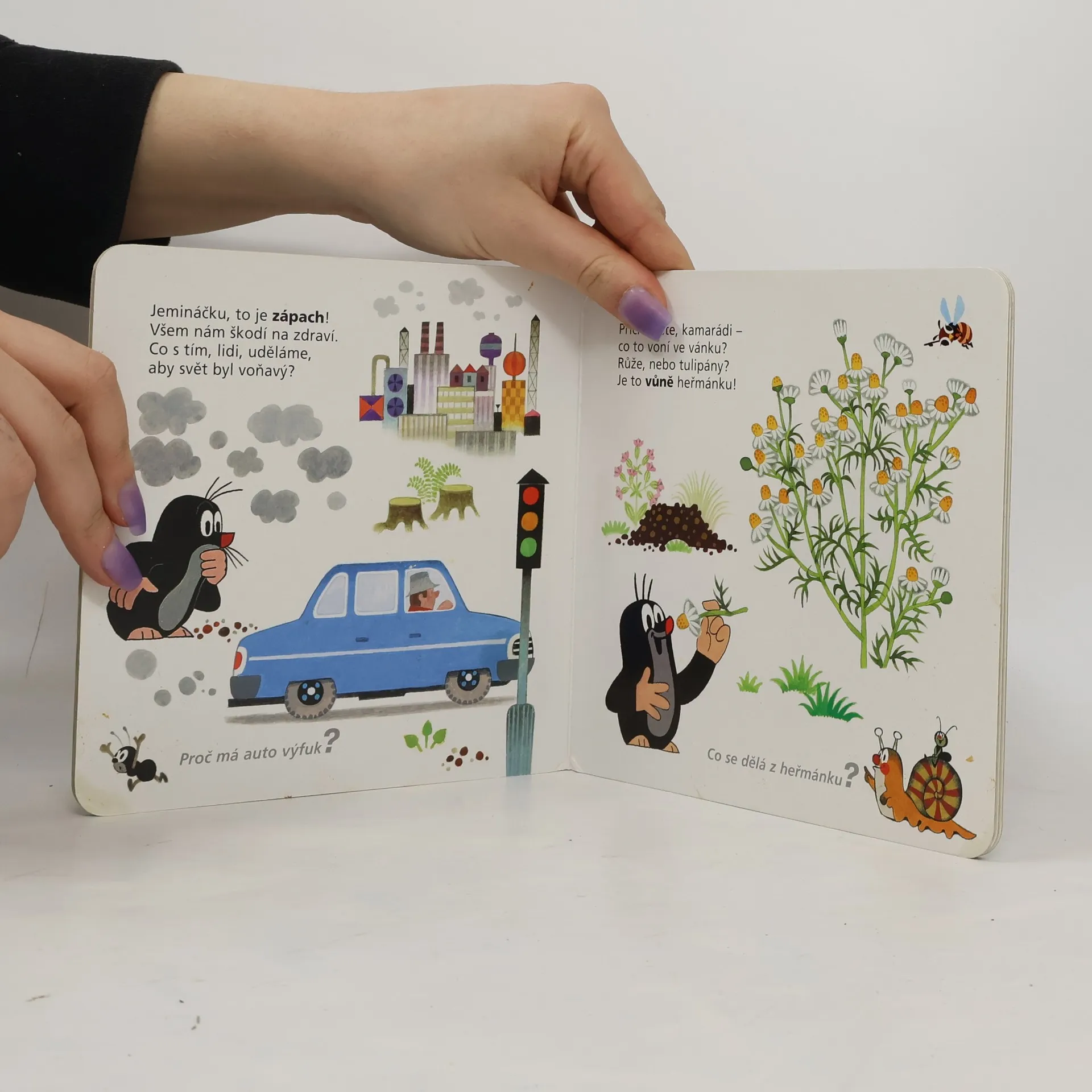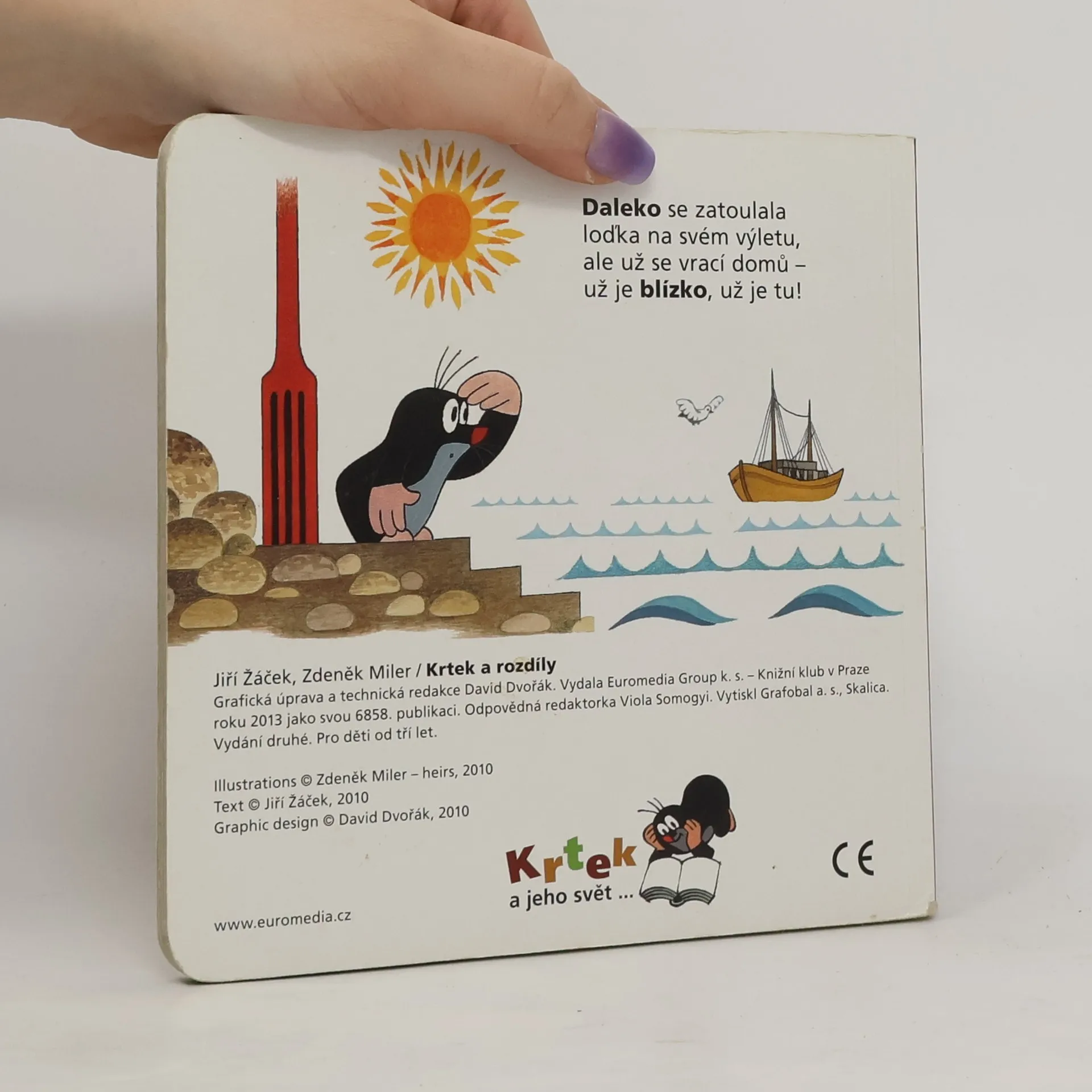 Osmý z řady příběhů pro nejmenší čtenáře o tom, co všechno umí neposedný krteček a jeho zvířecí kamarádi, se zaměřuje na pět smyslů a na poznávání protikladů. Krtek dětem ukáže, co je daleko a co blízko, co voní, a co naopak zapáchá, co je sladké a co je slané.