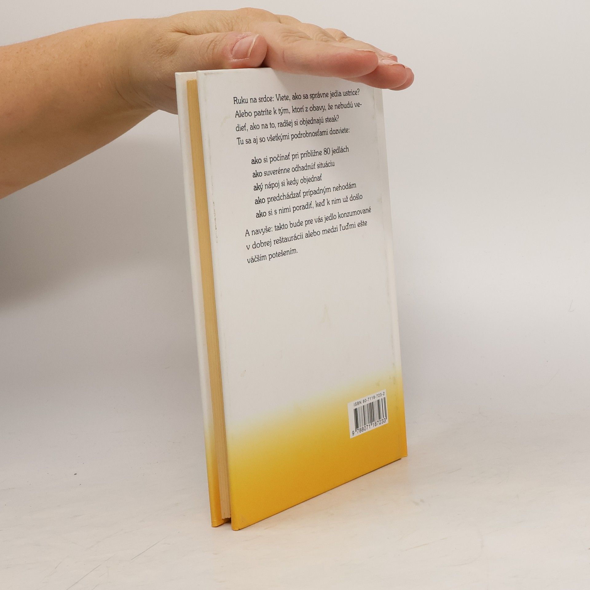 Autor poradí čitateľom, ako si počínať pri približne 80 jedlách, ako ich jesť, čo si k nim objednať, ako predchádzať nehodám, atd...
