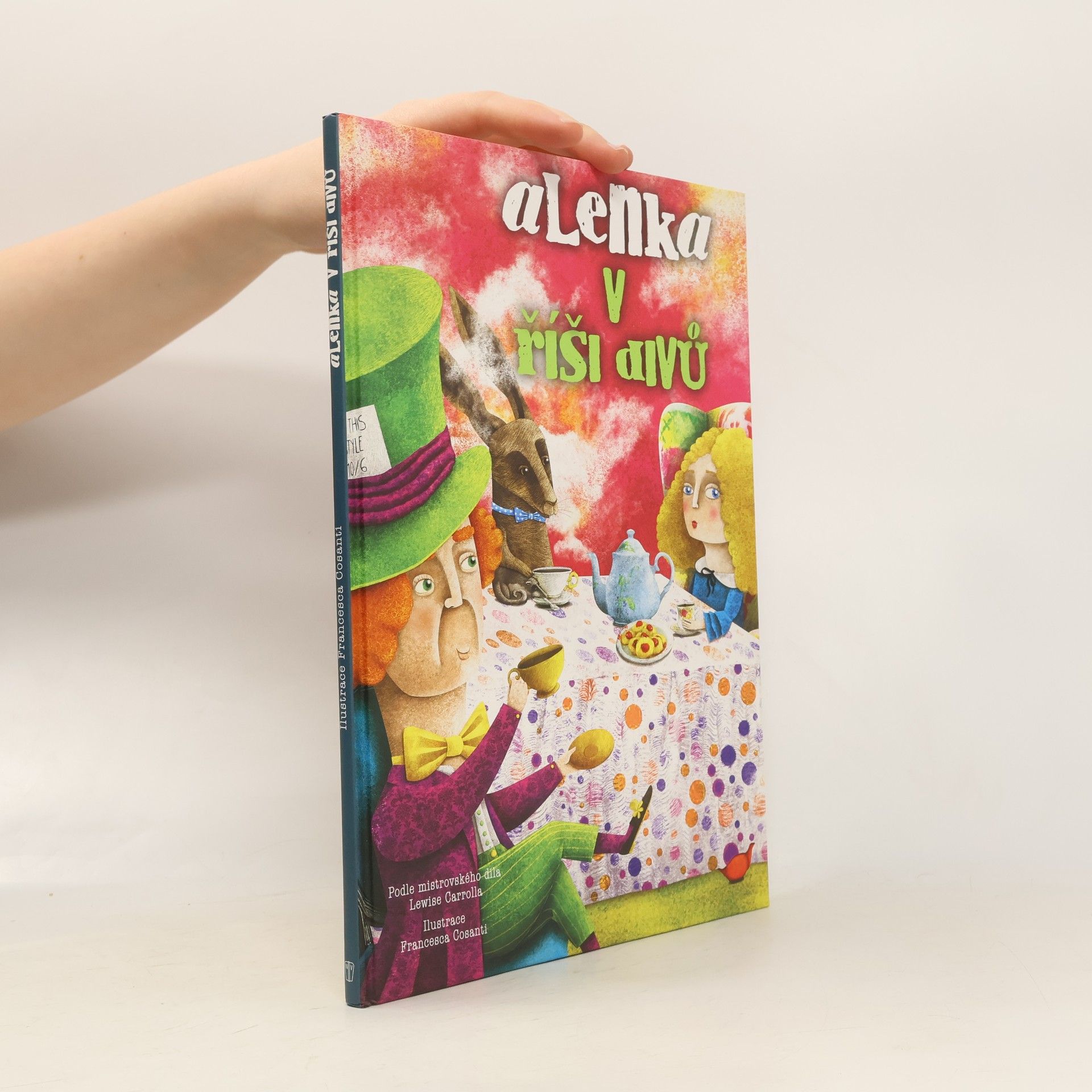 Podle mistrovského díla Lewise Carrolla. Traduje se, že matematik Ch. L. Dodgson, kterého známe pod pseudonymem Lewis Carroll, vymyslel příběh při projížďce na člunu, kde jej vyprávěl dceři svého přítele - Alici. Ta jej uprosila, aby o dobrodružstvích napsal knihu. Hlavní hrdinkou je stejnojmenná dívka Alenka, která proletí hlubokou králičí norou do fantazijního světa, kde vše funguje podle vlastních a nepředvídatelných pravidel: rozměry, čas i království Srdcové královny. Ohromené děvčátko se setká s řadou osobitých až pitoreskních postav: mluvícím bílým králíkem, kočkou Šklíbou, Kloboučníkem, Houseňákem, vojáky-kartami ad. Zkrácenou verzi slavné Carrollovy pohádky doprovodila půvabnými a osobitými obrázky italská ilustrátorka Francesca Cosanti.