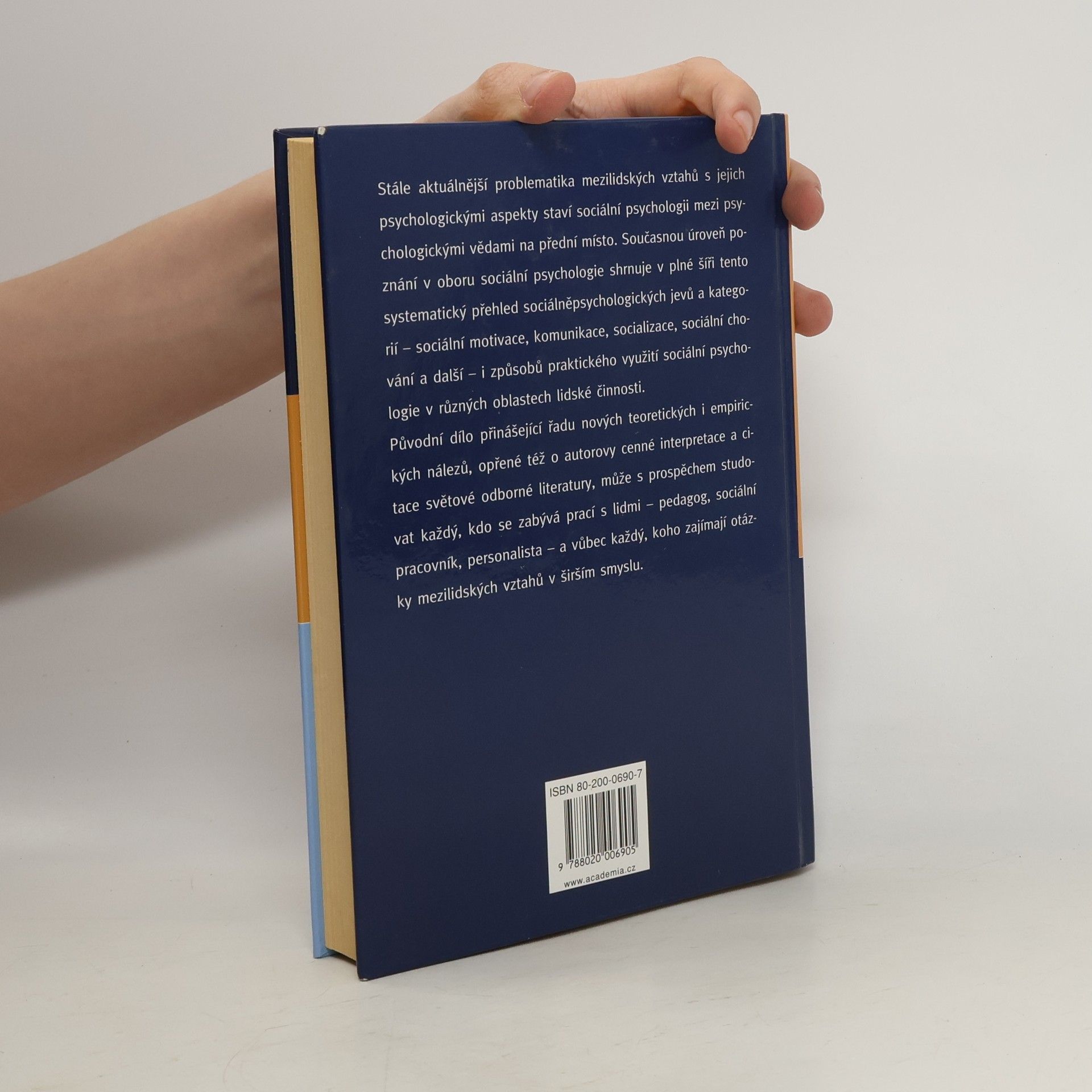 Kniha shrnuje současnou úroveň poznání v oboru sociální psychologie. Přináší řadu nových teoretických a empirických nálezů, opřených o autorovy cenné interpretace a citace světové odborné literatury. Může ji s prospěchem studovat každý, kdo se zabývá prací s lidmi nebo koho zajímají otázky mezilidských vztahů v širším smyslu.