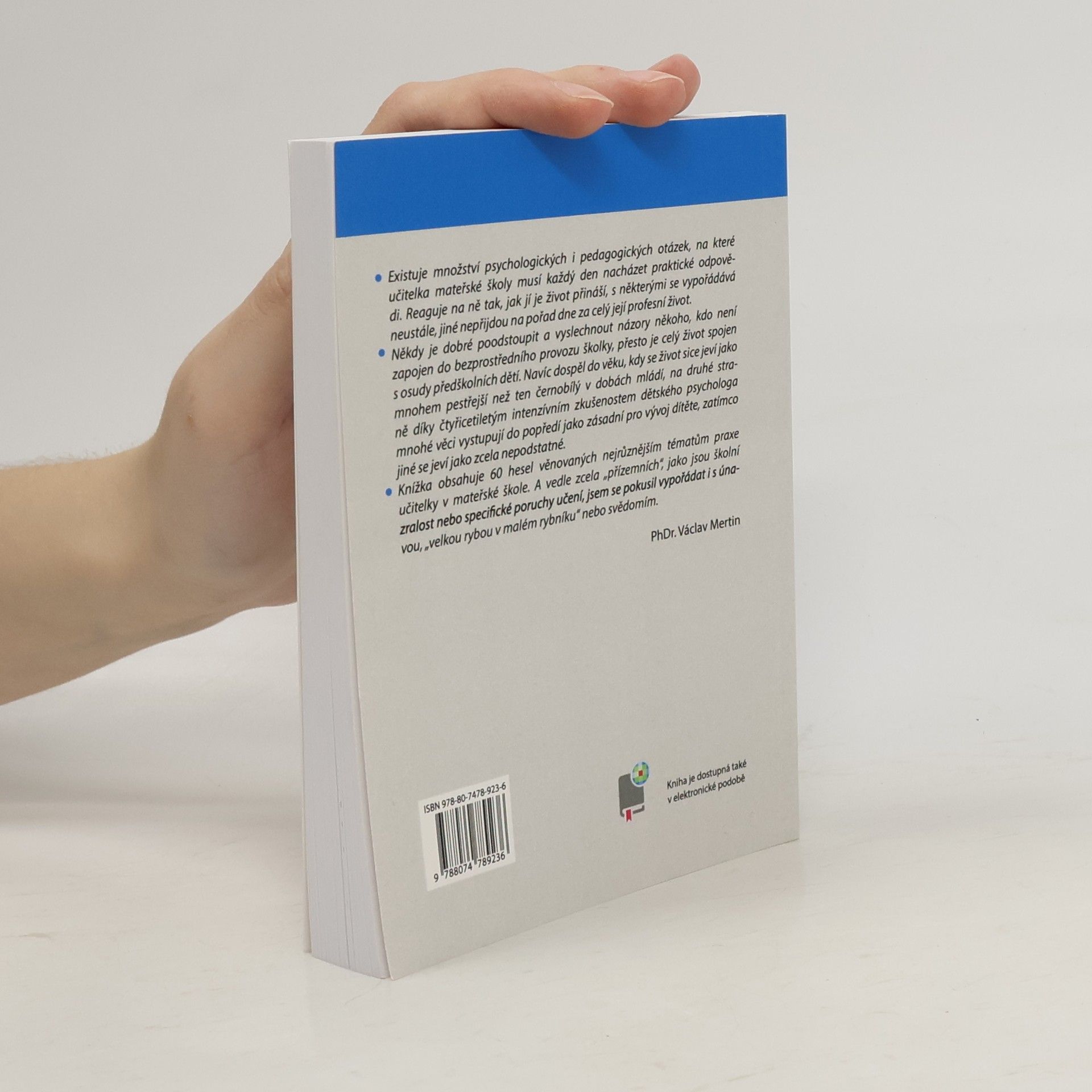 Existuje množství psychologických i pedagogických otázek, na které učitelka mateřské školy musí každý den hledat odpovědi. Reaguje na ně tak, jak jí je život přináší, s některými se vypořádává neustále, jiné nepřijdou na pořad dne za celý její profesní život. Naše kniha obsahuje 60 hesel řazených podle abecedy, která se věnují nejrůznějším tématům praxe učitelky v mateřské škole. Přehledně a srozumitelně jsou zde zpracovány např. školní zralost, specifické poruchy učení, únava, „velká ryba v malém rybníku“, svědomí atd.