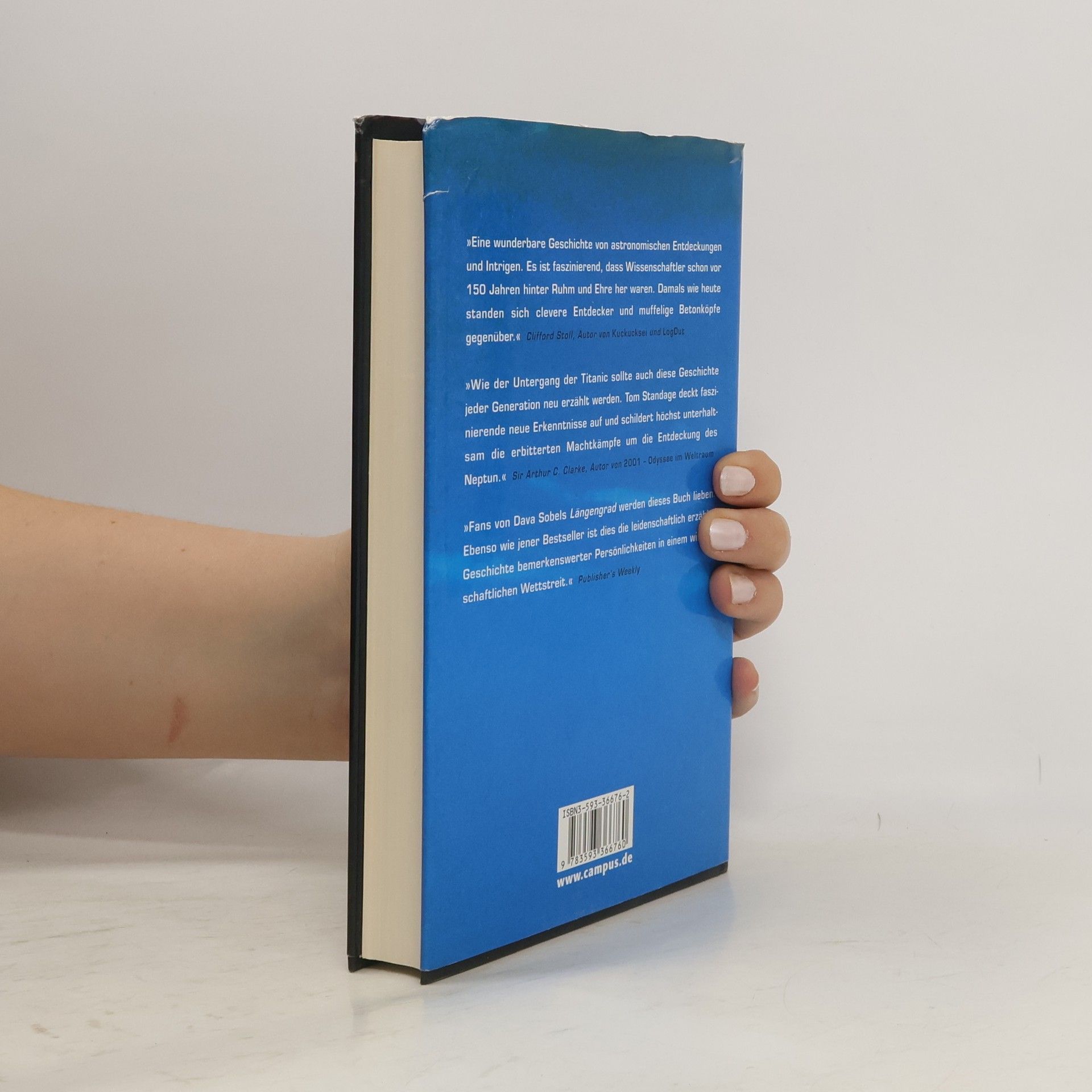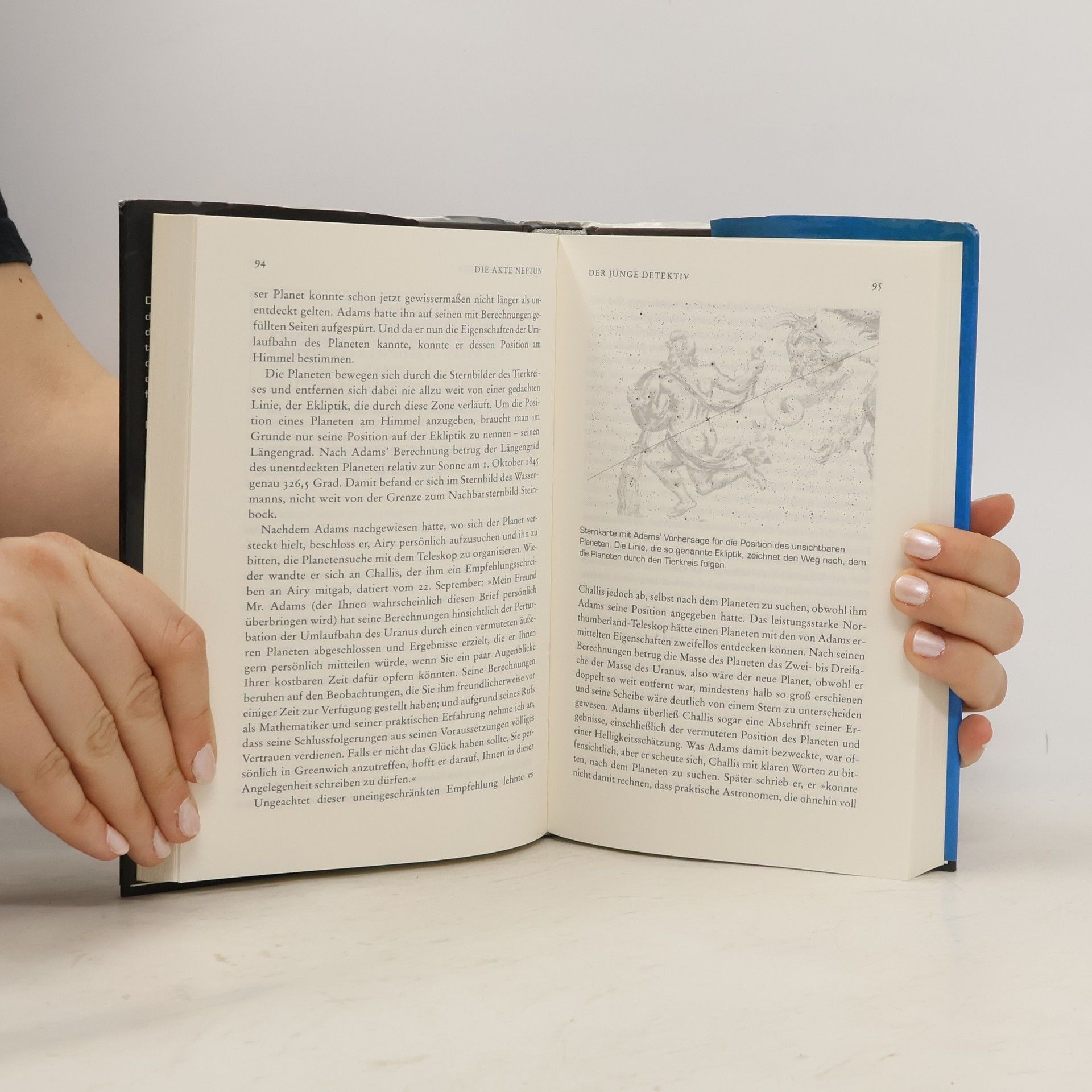 Nach der Entdeckung des Planeten Uranus 1781 stellte man fest, dass dieser sich nicht in der vorberechneten Umlaufbahn um die Sonne befand. Der britische Mathematiker Adams schloss 1845 daraus, dass es einen weiteren Planeten geben musste, der den Umlauf des Uranus störte. Auch der französische Wissenschaftler Le Verrier kam zu diesem Schluss. Die Jagd begann: Wer würde den achten Planeten entdecken? Sir George Airy, Leiter der Königlichen Sternenwarte, der selbst eine fatale Rolle in der Planetenjagd spielte, führte über die Ereignisse Buch. Seine Notizen waren lange verschollen, bis sie 1999 in Chile wieder auftauchten. Tom Standage rekonstruiert aus diesen Aufzeichnungen und weiteren Originaldokumenten die spannende Erzählung von Helden und Verrückten, Amateurastronomen und akademischen Rivalen. Und die Geschichte geht weiter: Obwohl bis zur erneuten „Berechnung“ eines Planeten 150 Jahre vergehen sollten, sind seit 1995 Dutzende nach Adams' Methode gefunden worden. Keiner von ihnen wurde je gesehen.