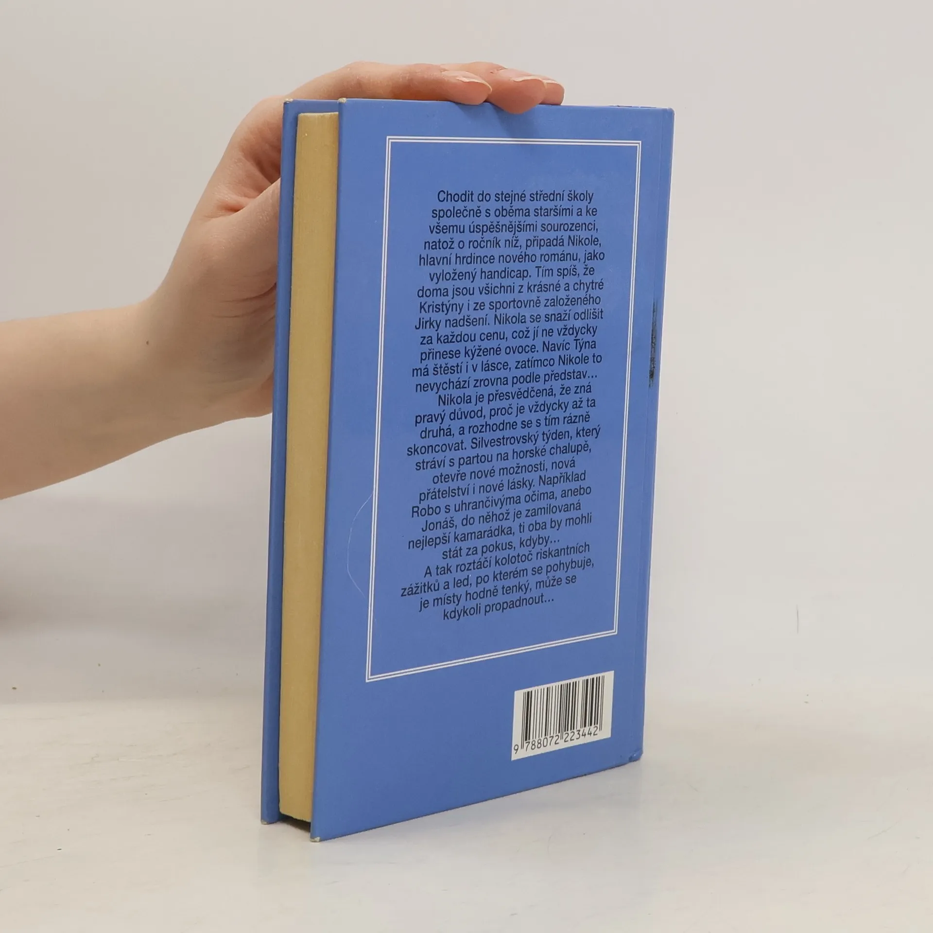 Chodit do stejné střední školy společně s oběma staršími a ke všemu úspěšnějšími sourozenci, natož o ročník níž, připadá Nikol, hlavní hrdince nového románu, jako vyložený handicap. Tím spíš, že doma jsou všichni z krásné a chytré Kristýny i ze sportovně založeného Jirky nadšení. Nikol se snaží odlišit za každou cenu, což jí ne vždycky přinese kýžené ovoce. Navíc Týna má štěstí i v lásce, zatímco Nikol to nevychází zrovna podle představ... Nikol je přesvědčená, že zná pravý důvod, proč je vždycky až ta druhá, a rozhodne se s tím rázně skoncovat. Silvestrovský týden, který stráví s partou na horské chalupě, otevře nové možnosti, nová přátelství i nové lásky. Například Robo s uhrančivýma očima, anebo Jonáš, do něhož je zamilovaná nejlepší kamarádka, ti oba by mohli stát za pokus, kdyby... A tak roztáčí kolotoč riskantních i erotických zážitků a led, po kterém se pohybuje, je místy hodně tenký, může se kdykoli propadnout.