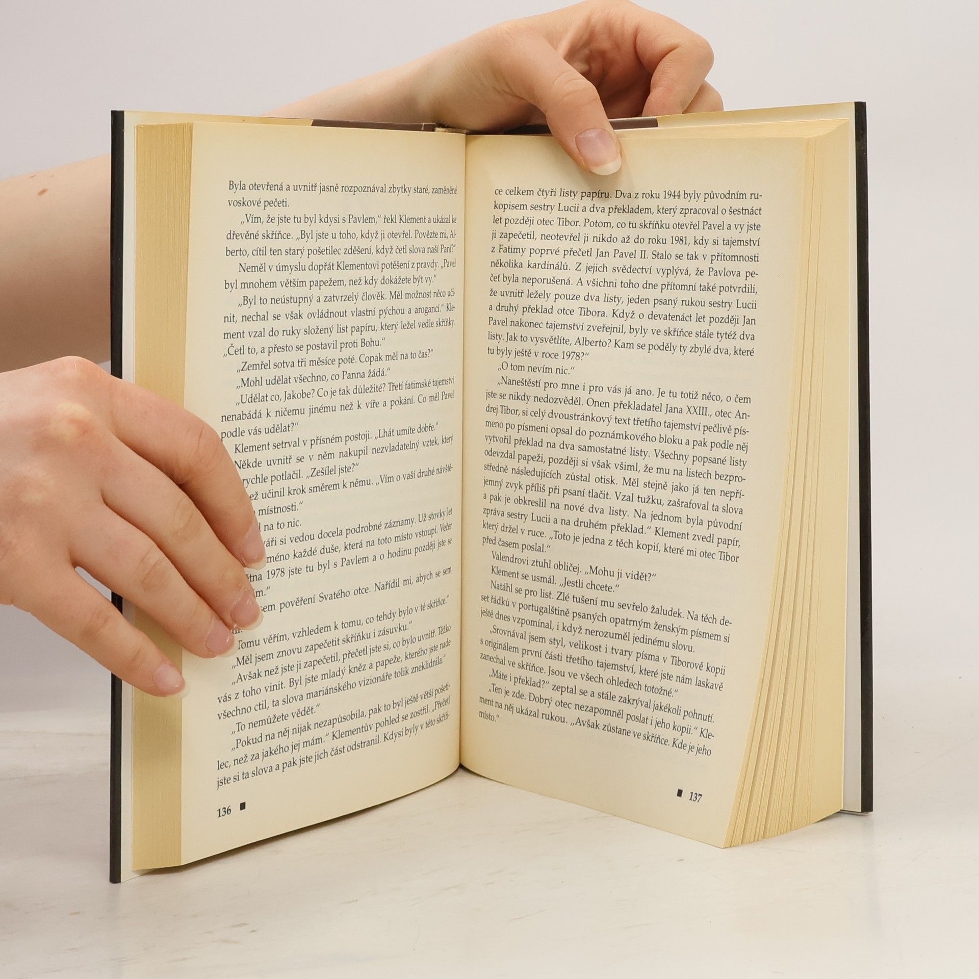 Klement XV. má za sebou tříletou papežskou službu, když začne vznášet pochybnosti o dávných církevních dogmatech. Jeho tajemník Colin Michener, je hluboce znepokojen nejen posunem v papežově smýšlení, ale také tím, že Klement stále častěji navštěvuje tajnou svatyni v útrobách vatikánských archivů, kde jsou uloženy vzácné historické listiny. Michenerova ostražitost dostoupí vrcholu, když ho papež vyšle do Rumunska za starým knězem, který zřejmě jako jediný zná skutečné znění proroctví, jež v roce 1917 vyjevila Panna Marie třem dětem v portugalské Fatimě. Je možné, že papežovo podivné chování nějak souvisí s oním proroctvím? Odhalil snad tajemství, které doposud zůstávalo skryto? Mohlo se skutečně stát, že svět nezná pravdivou a úplnou podobu poselství Ježíšovy matky? Hledání odpovědi na tuto otázku zavede Michenera na nebezpečnou stezku plnou šifer, zločinu a soupeřících náboženských doktrín. A jak se zdá, jeho počínání je trnem v oku zejména kardinálu Albertu Valendreovi, který je odhodlán k jakýmkoli činům, jen aby se stal dalším papežem…