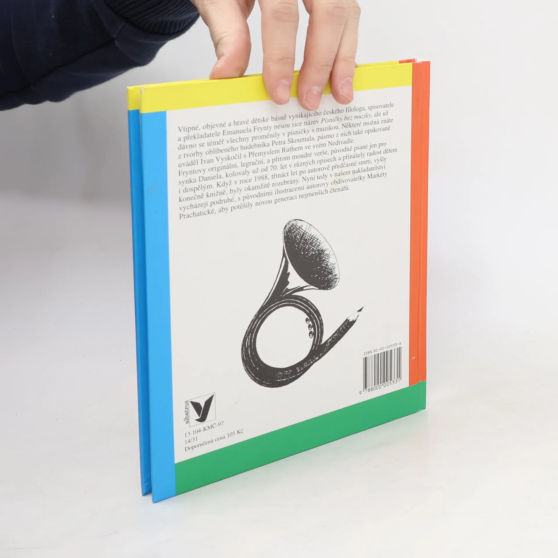 Vtipné, objevné a hravé dětské básně vynikajícího českého filologa, spisovatele a překladatele Emanuela Frynty nesou sice název Písničky bez muziky, ale už dávno se téměř všechny proměnily v písničky s muzikou. Fryntovy originální, legrační a přitom moudré verše, původně psané jen pro synka Daniela, kolovaly už od 70. let v různých opisech a přinášely radost dětem i dospělým.