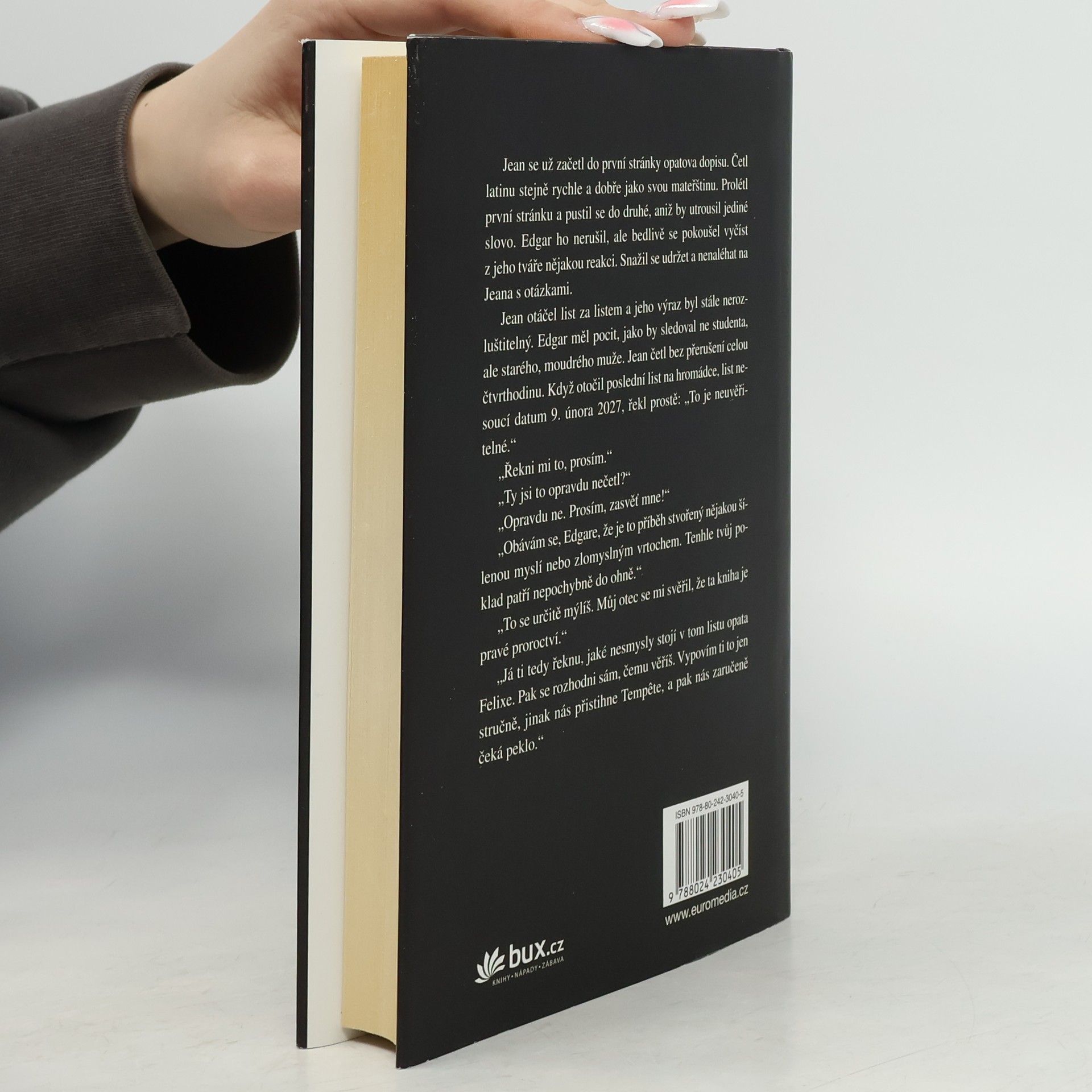 Tajemství sedmého syna, napínavý thriller o sériovém vrahovi Posledních dnů a záhadami opředené Knihovně, se sice dočkal překvapivého rozuzlení, příběh středověkých rukopisů zachycujících lidské zrození a smrt však pokračuje v neméně strhujícím románu Kniha duší. V londýnské dražební síni se jednoho dne objeví chybějící svazek pro rok 1527 a zvláštní agent FBI Will Piper je zatažen do jeho hledání. Z minulosti knihy se tentokrát vynořuje konkrétní příběh: vystoupí v něm William Shakespeare, Jan Kalvín či Johannes Nostradamus a jeho proroctví...