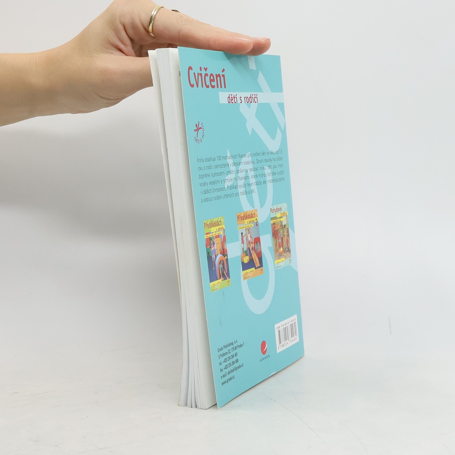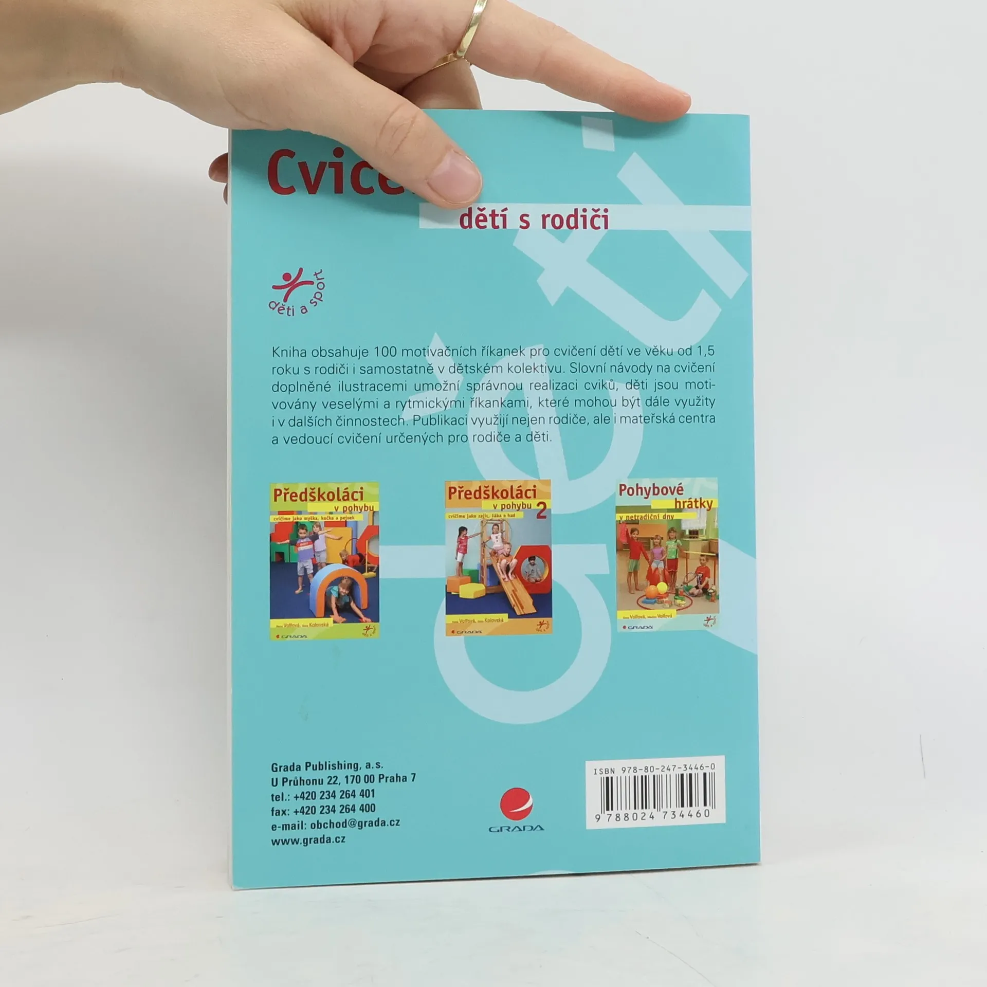 Kniha obsahuje 100 motivačních říkanek pro cvičení dětí ve věku od 1,5 roku s rodiči i samostatně v dětském kolektivu. Slovní návody na cvičení doplněné ilustracemi umožní správnou realizaci cviků, děti jsou motivovány veselými a rytmickými říkankami, které mohou být dále využity i v dalších činnostech. Publikaci využijí nejen rodiče, ale i mateřská centra i vedoucí cvičení určených pro rodiče a děti. Nakladatelská anotace.