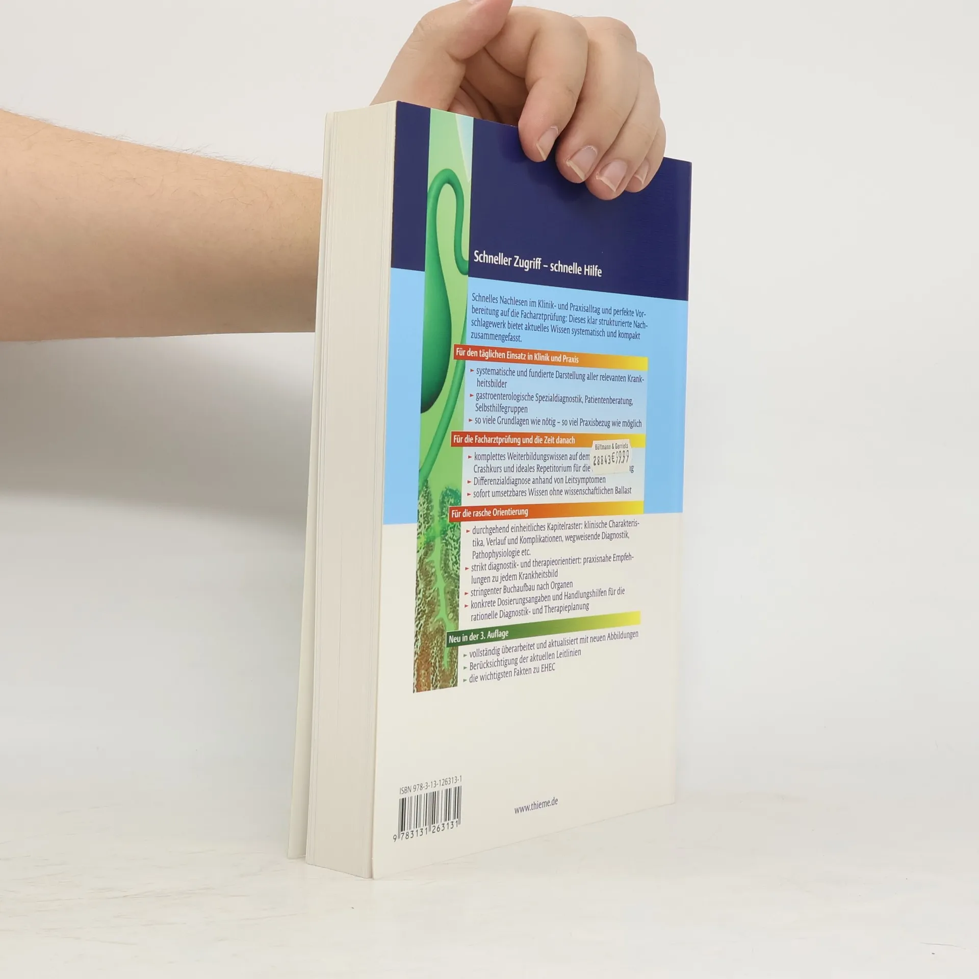 Alles drin! Systematische und fundierte Darstellung aller relevanten Krankheitsbilder So viele Grundlagen wie nötig - so viel Praxisbezug wie möglich Gastroenterologische Spezialdiagnostik, Patientenberatung, Selbsthilfegruppen Kompaktes Nachschlagewerk für den Klinik- und Praxisalltag Ideales Repetitorium für die Facharztprüfung Alles klar! Differenzialdiagnose anhand von Leitsymptomen Sofort umsetzbares Wissen ohne wissenschaftlichen Ballast Fakten, Fakten, Fakten. Rascher Zugriff dank klarer Gliederung und Schnell-Lesestraße Strikt diagnostik- und therapieorientiert: Konkrete Handlungshilfen zu jedem Krankheitsbild Durchgehend einheitliches Kapitelraster: Klinische Charakteristika, Verlauf und Komplikationen, wegweisende Diagnostik, Pathophysiologie etc.