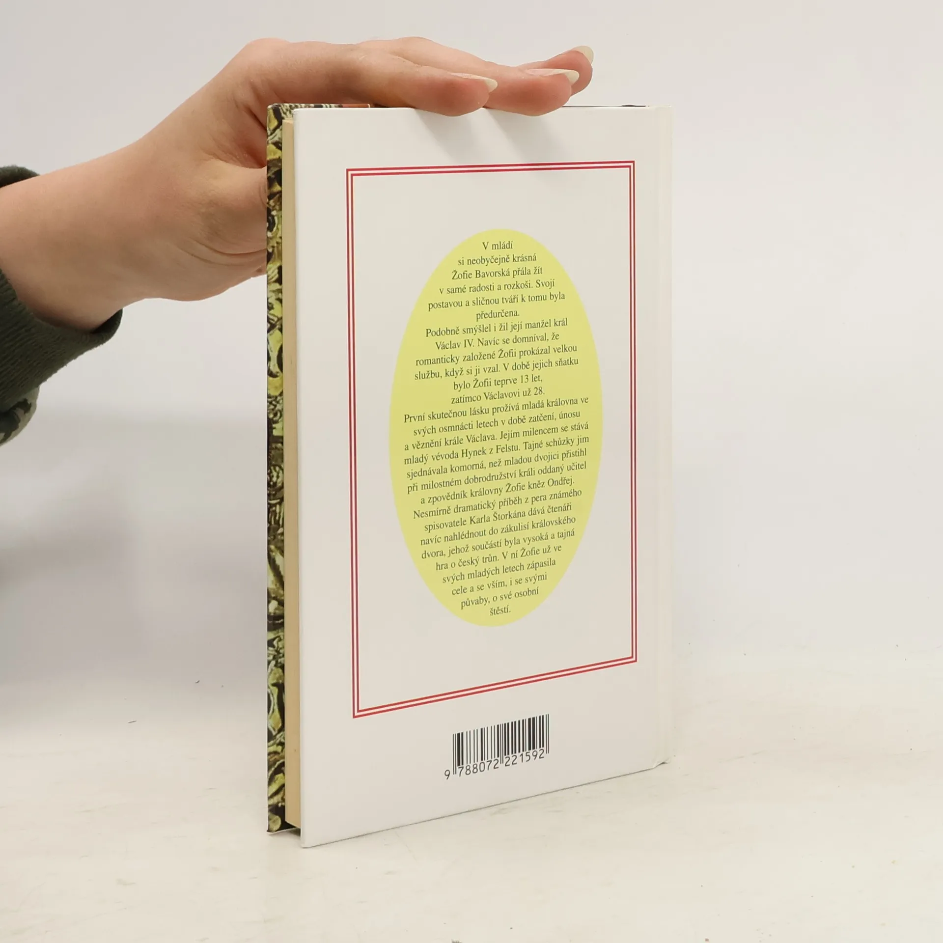 Historický román o životě Žofie Bavorské, druhé manželky Václava IV. Lucemburského. Princezna se za českého krále provdala velice mladá - ve třinácti letech. Romantická dívka od sňatku především očekávala lásku a tou ji o 15 let starší manžel příliš nezahrnoval, přestože byla velmi krásná a vzdělaná. Král se radši věnoval honům, pitkám a milenkám než své ženě. Vyhýbal se ale i řešení státnických problémů a jakékoli odpovědnosti. Královna se zpočátku snažila k němu najít cestu a vytvořit fungující manželství, ale protože ji Václav často nechával samotnou, nemělo její úsilí příliš dobrý výsledek. Touha po lásce a porozumění zůstala zatím nenaplněná. Té se Žofie dočkala až díky mladému vévodovi Hynkovi z Felstu. Kromě královnina osoudu Štorkán také popisuje politické poměry a intriky na českém královském dvoře 2. poloviny 14. a počátku 15. století.