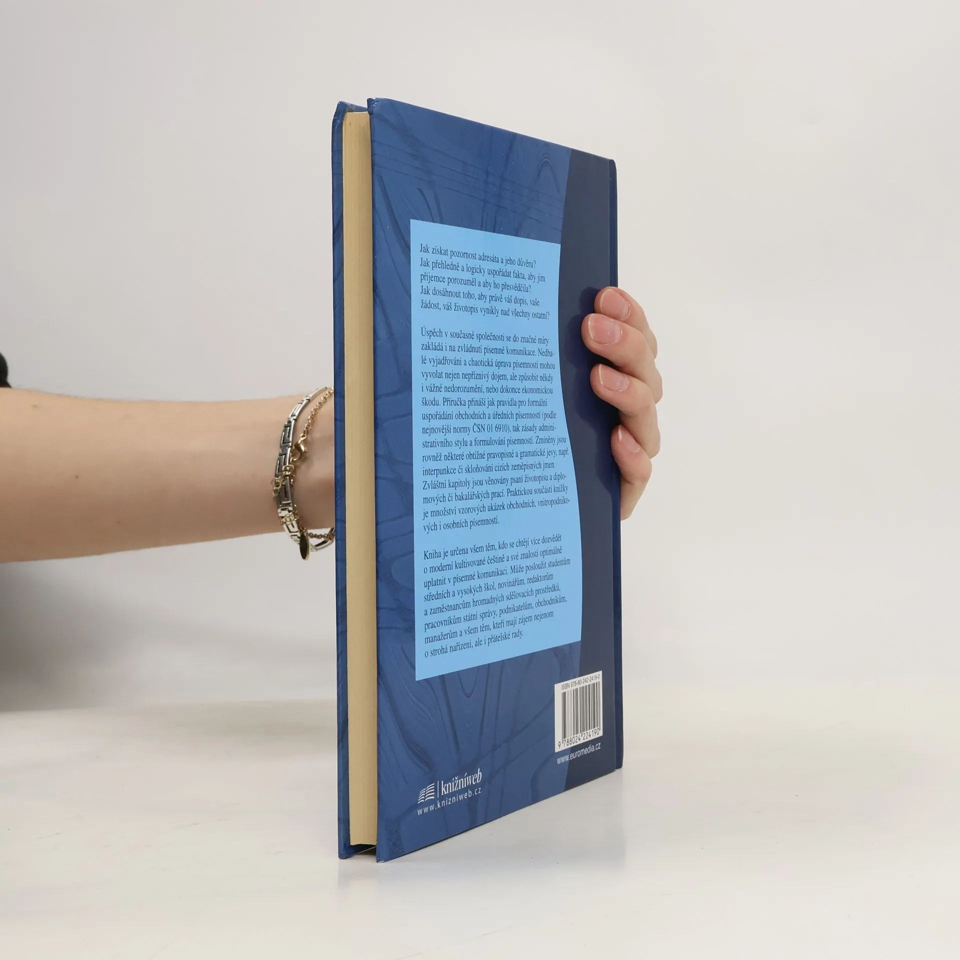 Úspěch v moderní společnosti se do značné míry zakládá i na zvládnutí komunikace v písemném projevu. Příručka přináší jak pravidla pro formální úpravu textů a uspořádání obchodních a úředních písemností (podle nejnovější normy ČSN 01 6910), tak i zásady administrativního stylu a formulování písemností včetně řady konkrétních příkladů. Podrobně se věnuje psaní životopisu a diplomových a bakalářských prací. Je nepostradatelná zejména pro administrativní pracovníky, ale i pro studenty a širokou veřejnost.